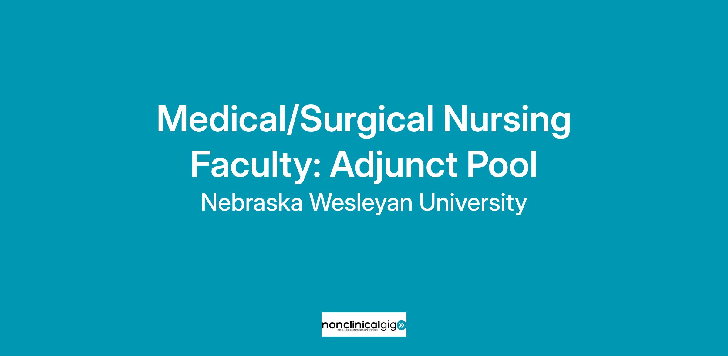 Nebraska Wesleyan University is accepting applications from candidates who are interested in teaching undergraduate course(s) specific to Medical/Surgical Nursing or working in a clinical setting as part of a ongoing and open pool of adjunct instructors. In collaboration with the Pre-licensure BSN Coordinator, candidates will manage clinical assignments as required and work with nursing faculty to plan, implement, and evaluate nursing curriculum, and related activities.