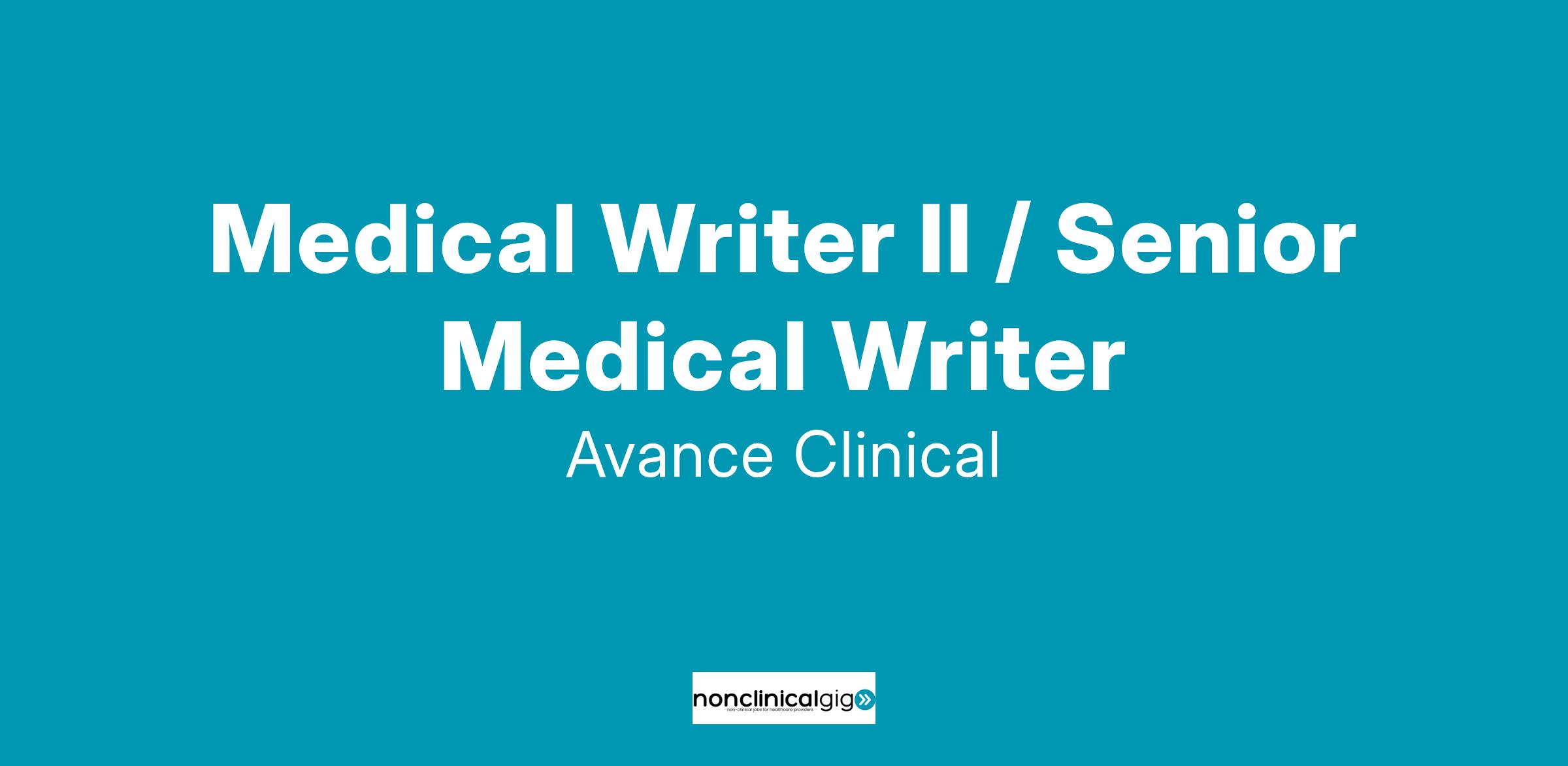 Australian based, regulatory Medical Writer II or Senior Medical Writer required.