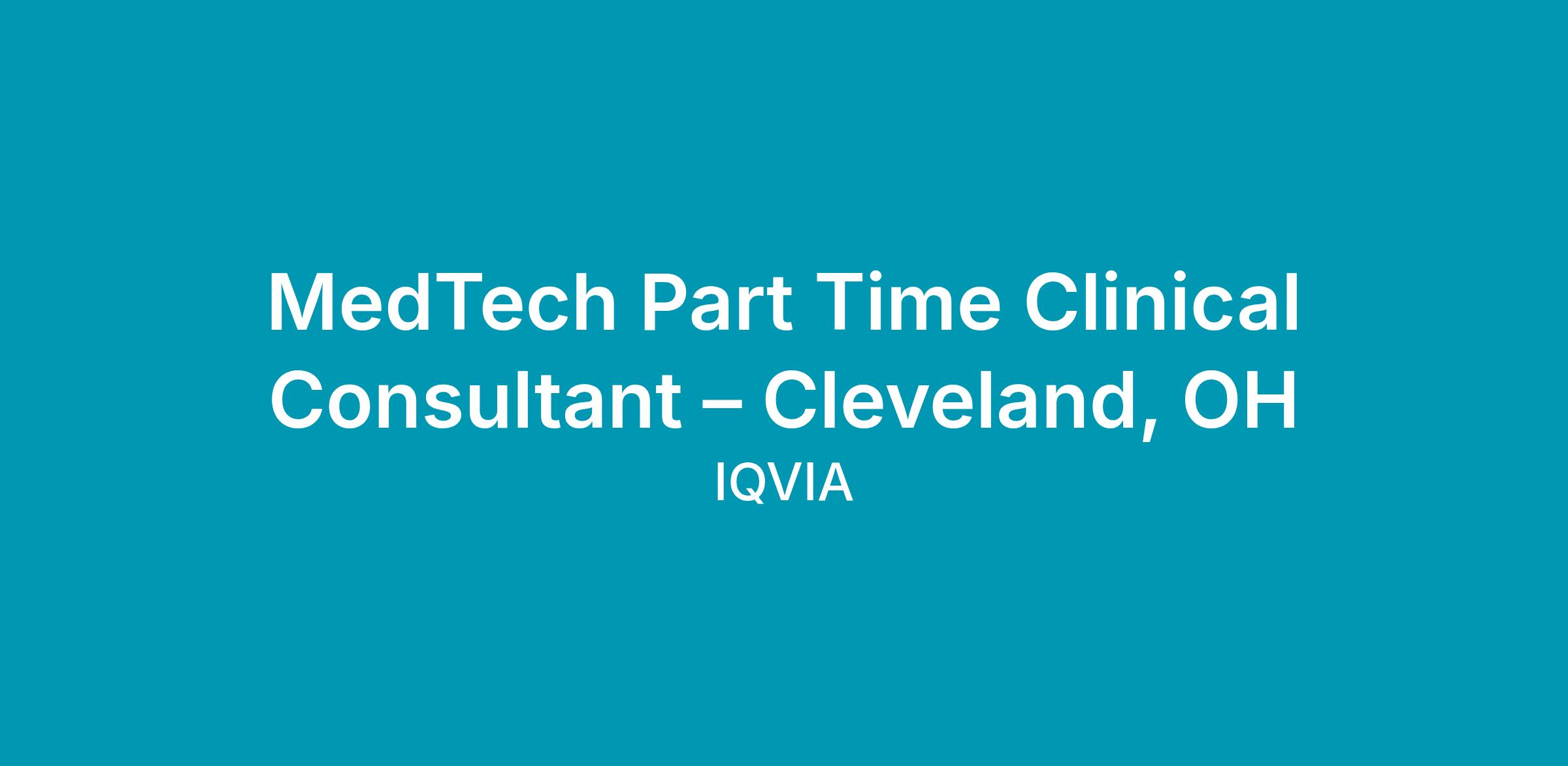 MedTech Part Time Clinical Consultant – Cleveland, OH