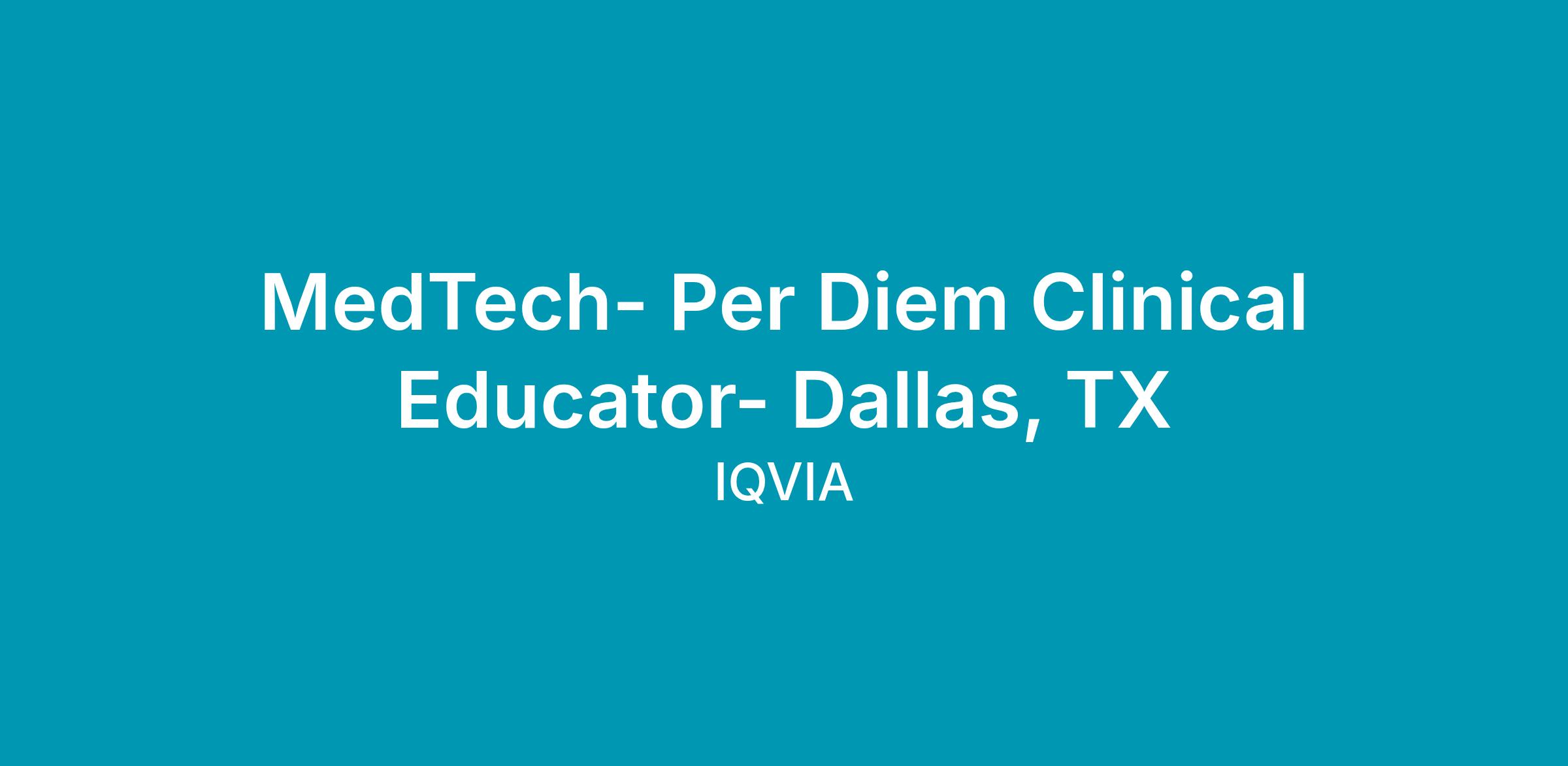 MedTech- Per Diem Clinical Educator- Dallas, TX
