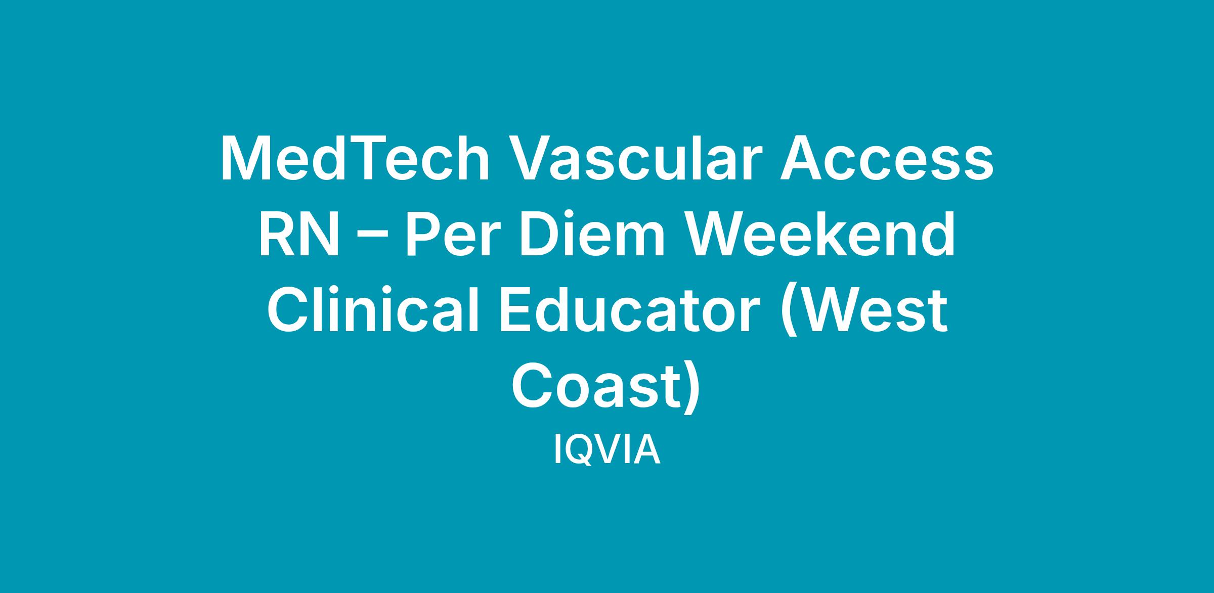 MedTech Vascular Access RN – Per Diem Weekend Clinical Educator (West Coast)