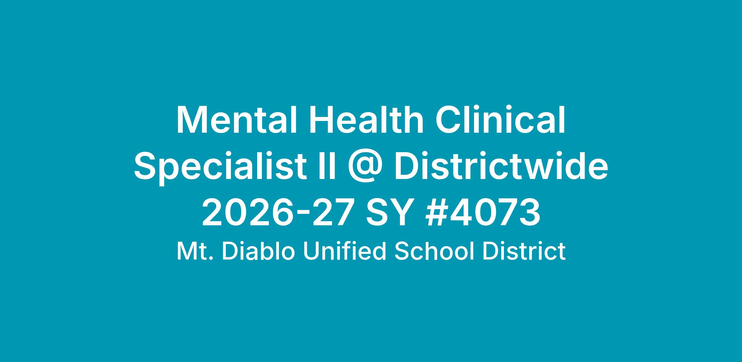 DEFINITION: The Mental Health Clinical Specialist II provides behavioral health services to district students referred for mental health assessment and assistance and/or IEP placement with the goal of facilitating and promoting appropriate behavioral health and personal growth. The Mental Health Clinical Specialist II identifies the behavioral health needs of students and develops therapy goals and objectives for implementation through an individual therapy treatment plan. Mental Health Clinical Specialist II has the ability to be flexible under pressure and adapts to interruptions and changes efficiently. The Mental Health Clinical Specialist II may provide consultation for pre-licensed Mental Health Clinical Specialists or interns.