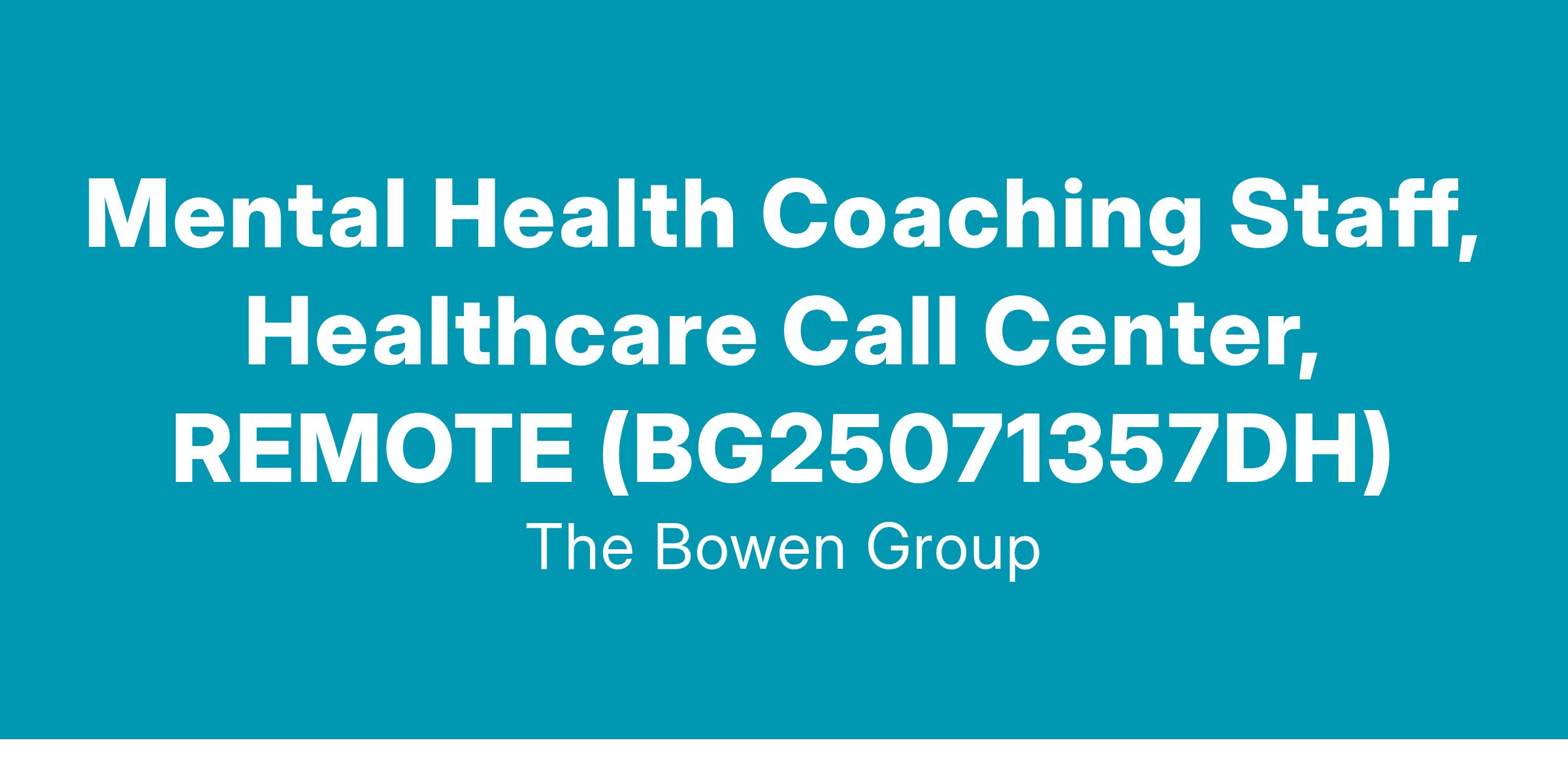 The Bowen Group, a GTSC company, seeks Call Center Mental Health Coaching Staff to support a Healthcare Call Center.