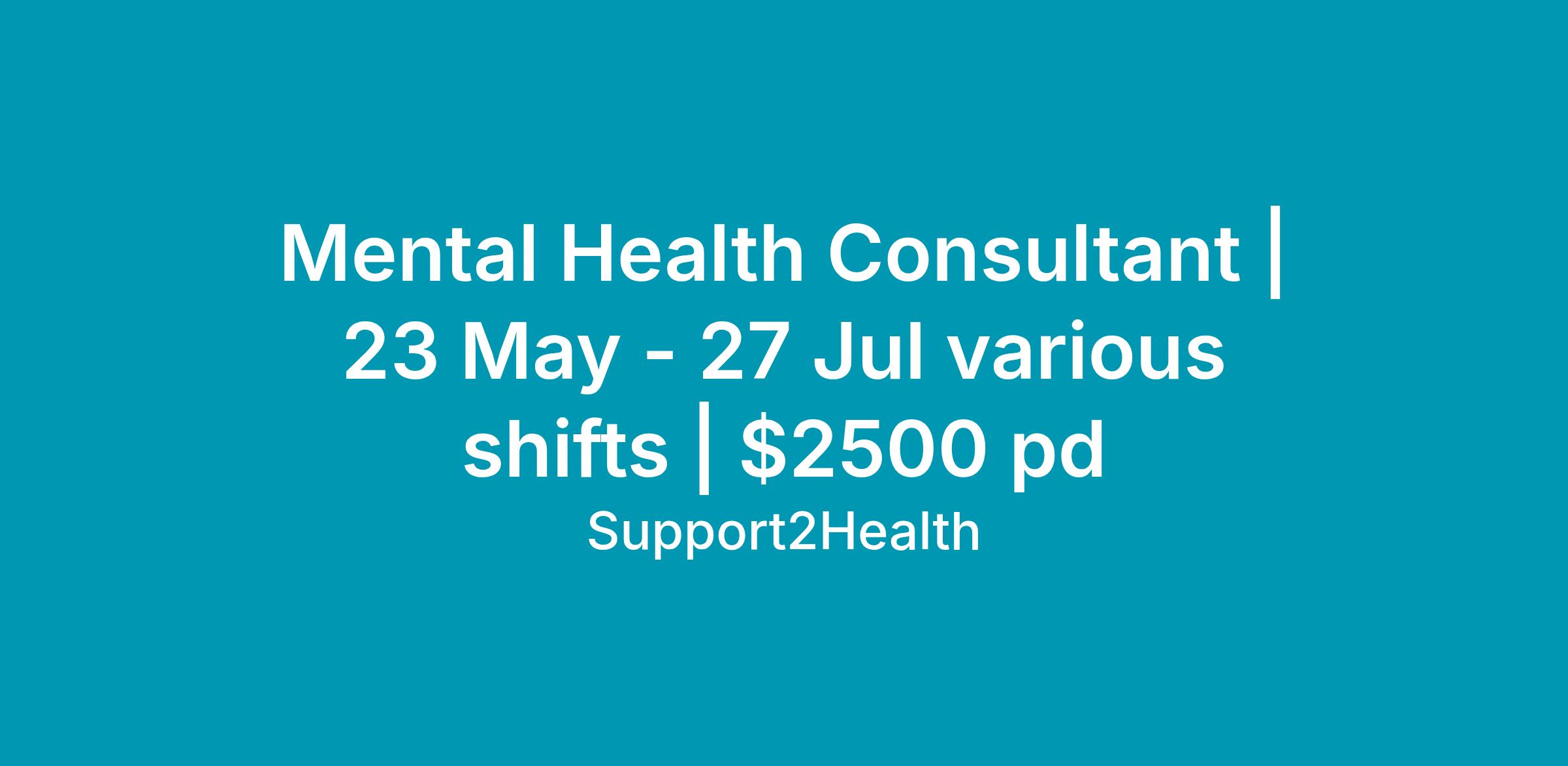Mental Health Consultant | 23 May - 27 Jul various shifts | $2500 pd