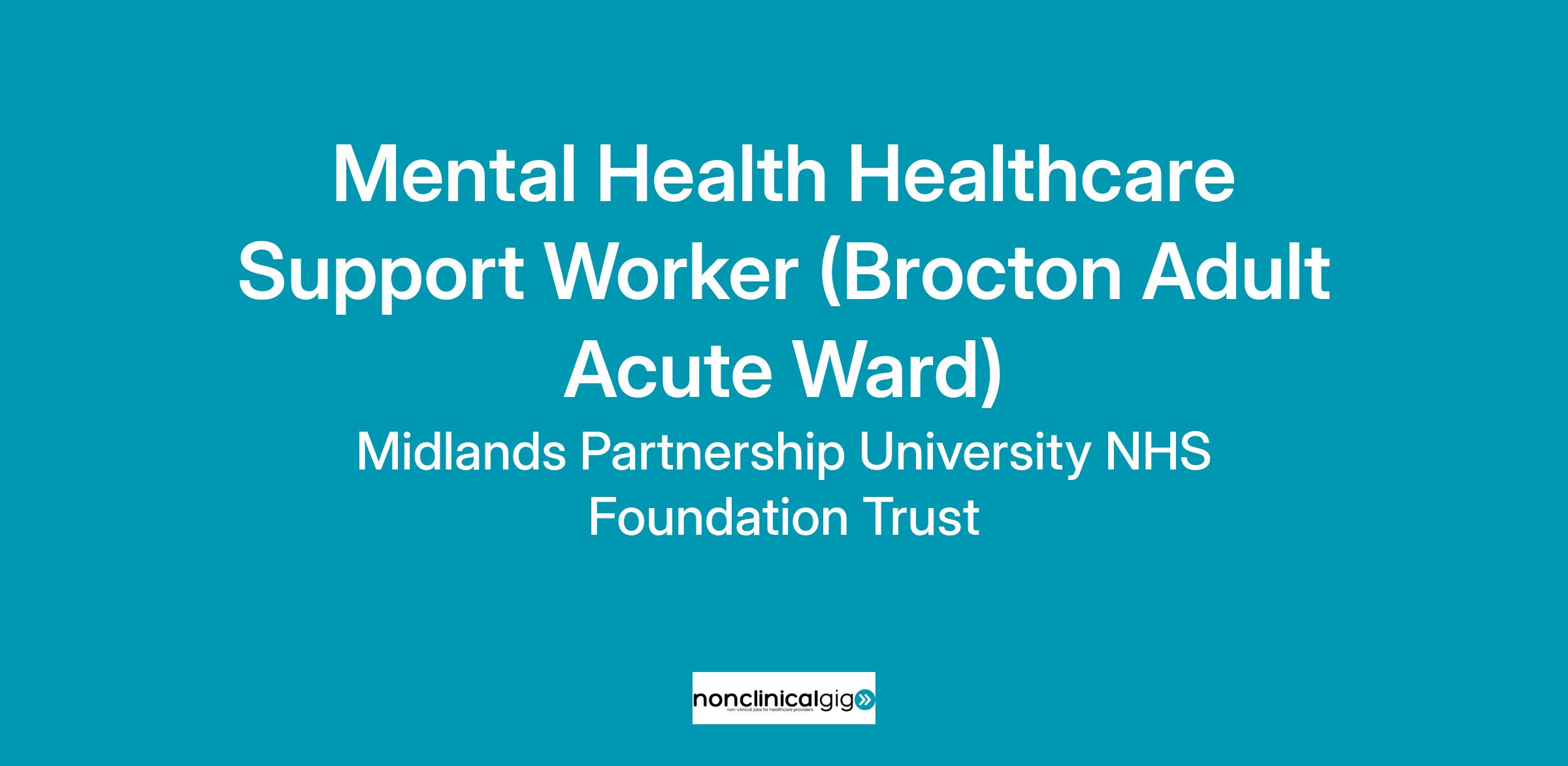 We are offering an exciting opportunity for a Band 2 Healthcare Support Worker to join our adult acute mental health ward, Brocton House at St George’s Hospital based in Stafford.