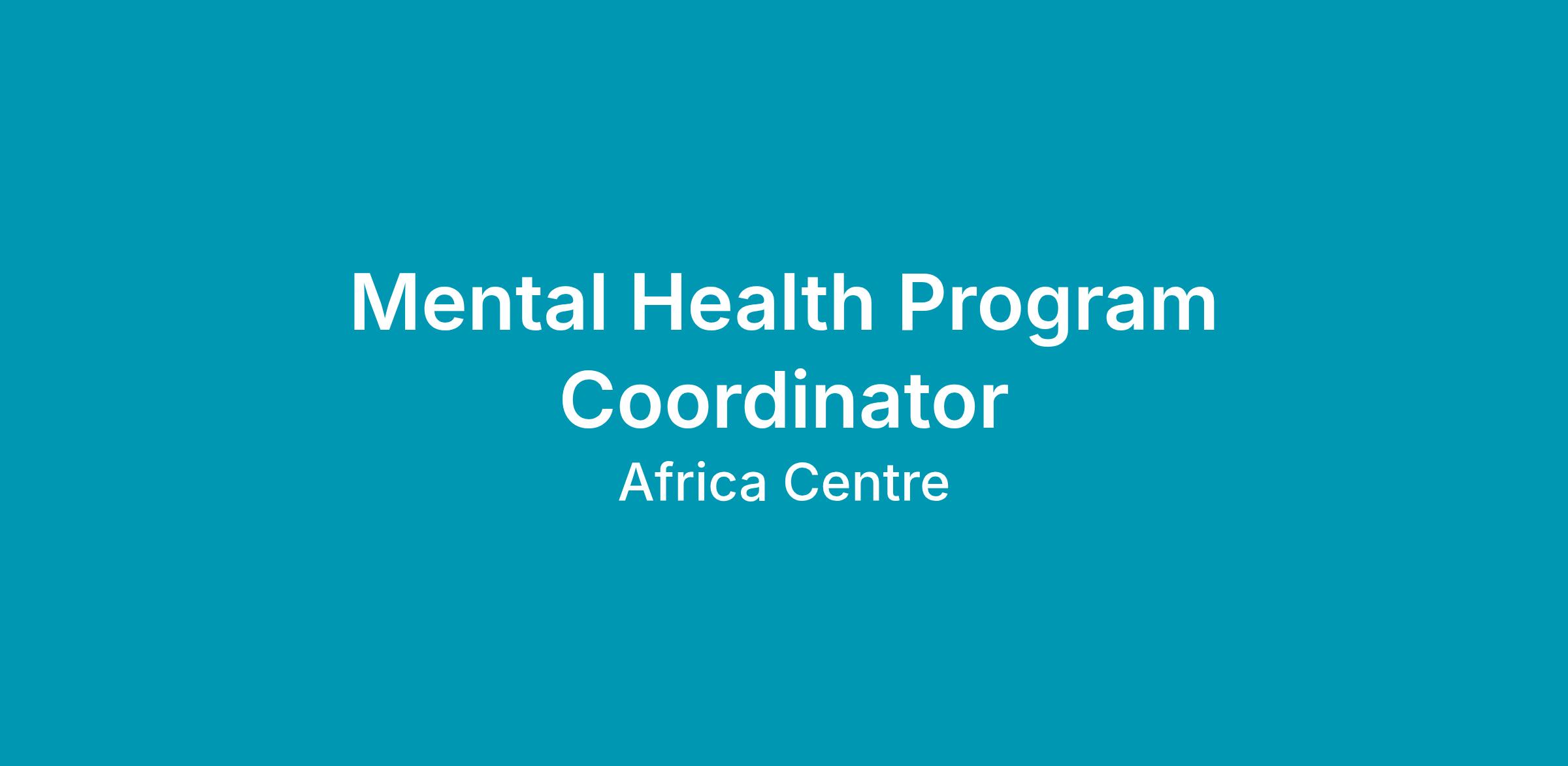 - Program Coordinator experience preferably in mental health or community services
