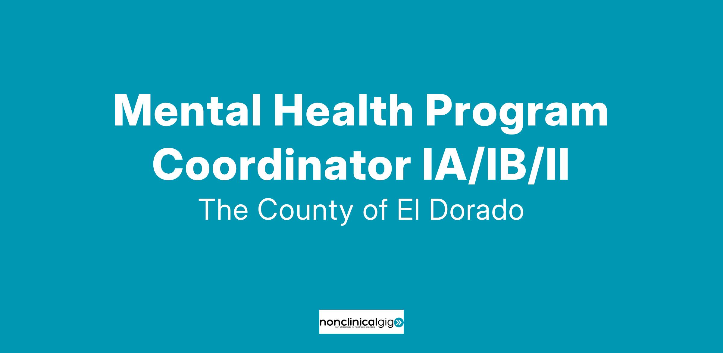 The County of El Dorado is recruiting applicants for Mental Health Program Coordinator IA/IB/II. This recruitment will establish a list for the purpose of filling current and future full time, part time, and extra help vacancies for at least three (3) months. We currently have the following vacancies:
