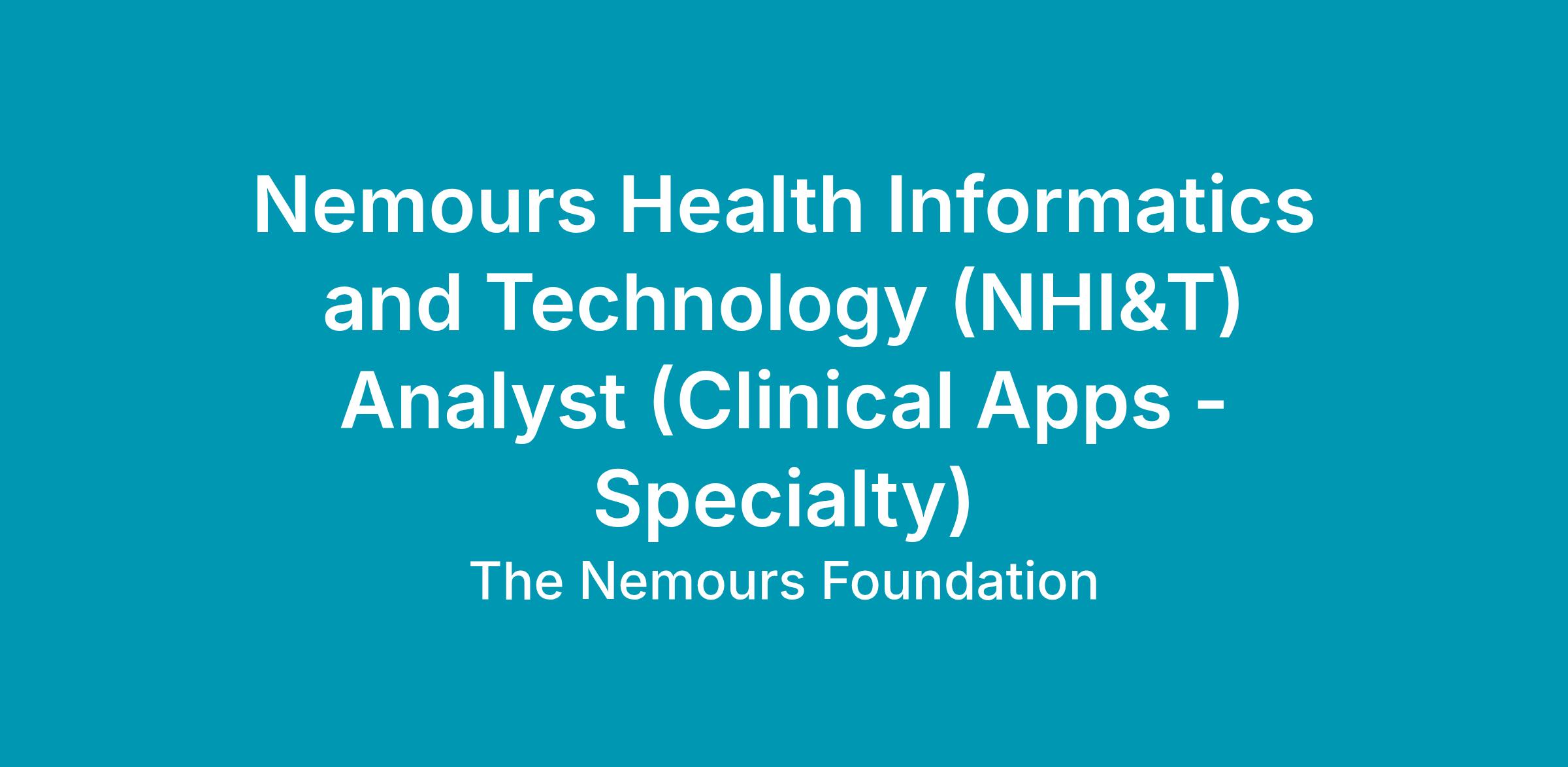 Nemours Children's Health is seeking a Nemours Health Informatics and Technology (NHI&T) Analyst, Full-Time, to join our team in Orlando, Florida.