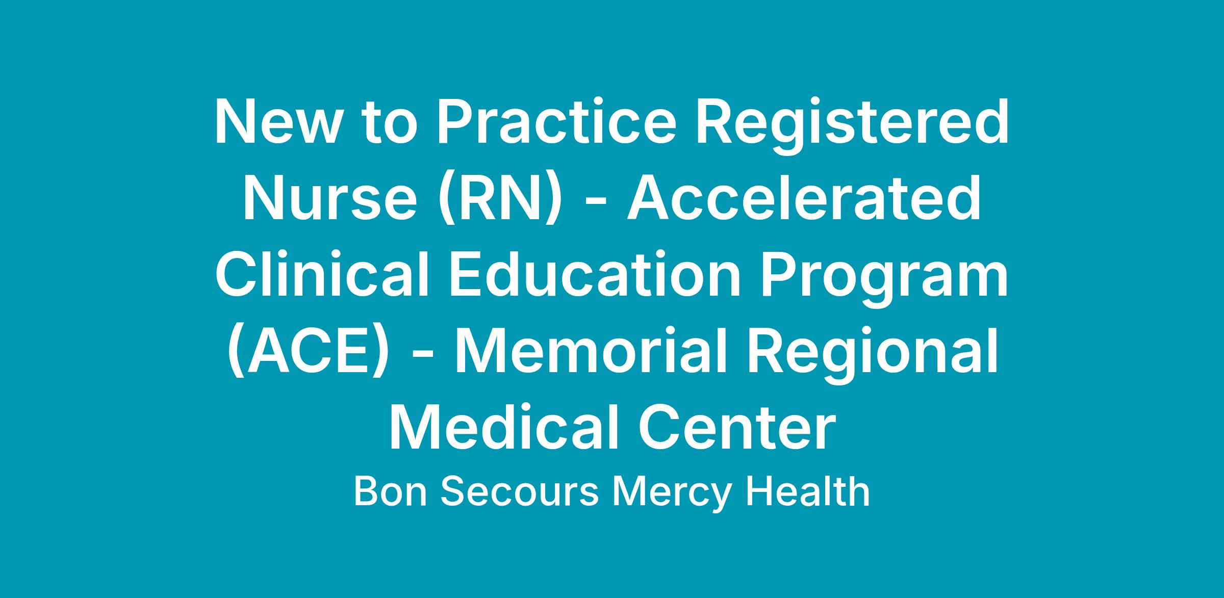 ACE Program - MemorialIt is our policy to abide by all Federal and State laws, as well as, the requirements of 41 CFR 60-1.4(a), 60-300.5(a) and 60-741.5(a). Accordingly, all applicants will receive consideration for employment without regard to race, color, national origin, religion, sex, sexual orientation, gender identity, age, genetic information, or protected veteran status, and will not be discriminated against on the basis of disability. If you’d like to view a copy of the affirmative action plan or policy statement for Mercy Health– Youngstown, Ohio or Bon Secours – Franklin, Virginia; Petersburg, Virginia; and Emporia, Virginia, which are Affirmative Action and Equal Opportunity Employer, please email recruitment@mercy.com. If you are an individual with a disability and would like to request a reasonable accommodation as part of the employment selection process, please contact The Talent Acquisition Team at recruitment@mercy.com.