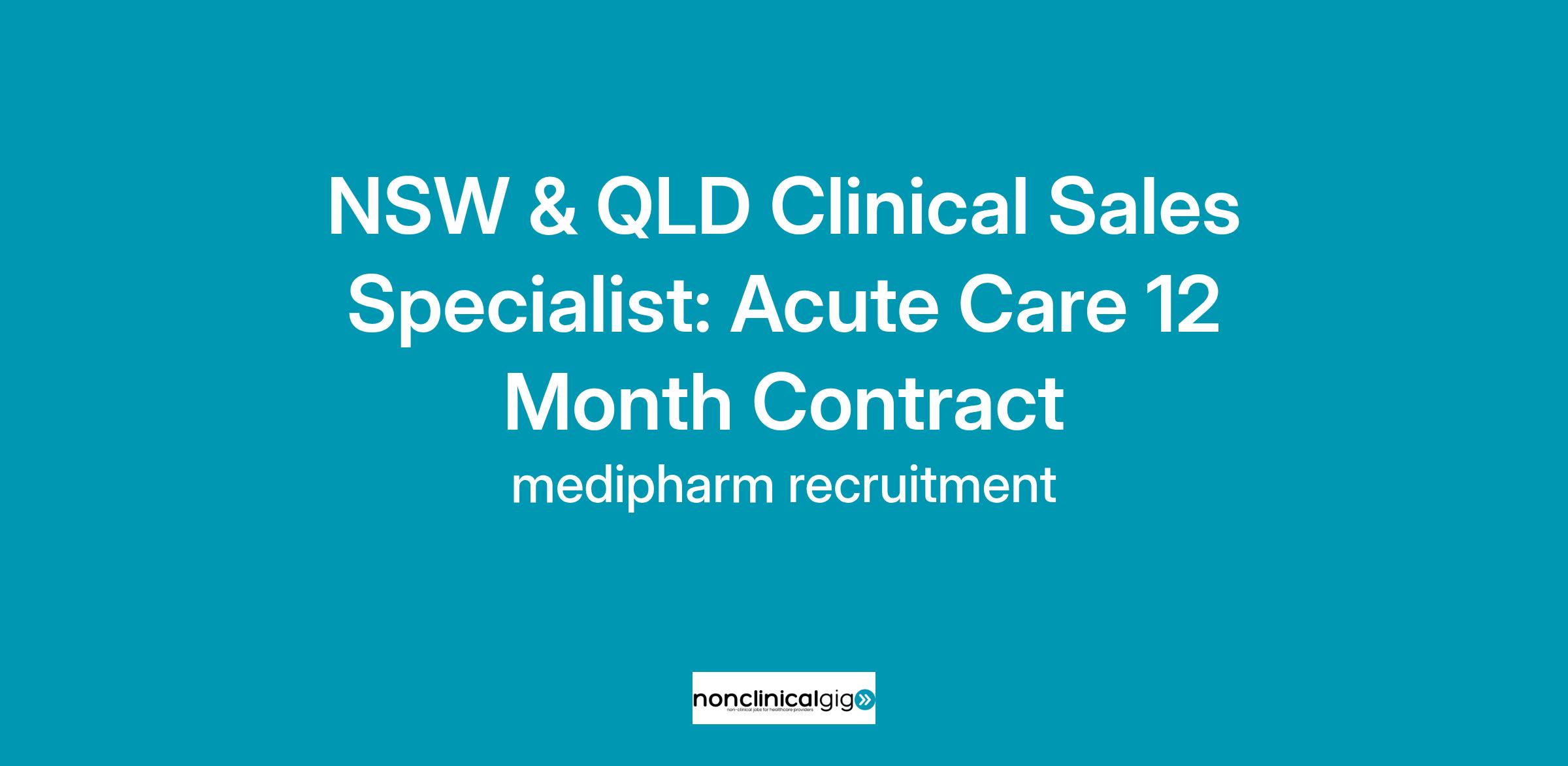 If this Sydney based, 12mth contract, Acute Care Clinical Sales Specialist position is of interest, without delay, please submit your CV.