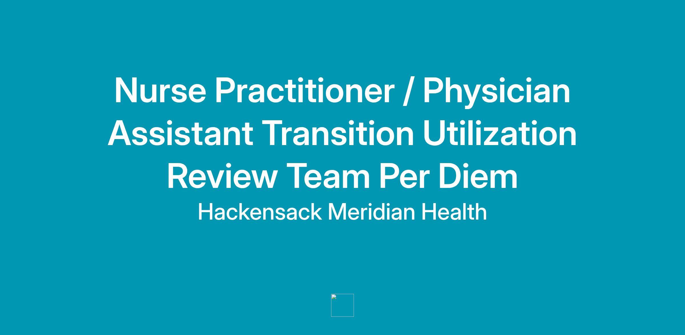 The Per Diem Advanced Practice Nurse (APN) or Physician Assistant (PA) for the Transition Utilzation Review Team utilizes a patient-centered coordinated care model, demonstrating competencies in leadership, direct clinical practice, consultation/collaboration, coaching/guiding, research, and ethical decision-making. The APN or PA works collaboratively with the practice/hospital team to assess, plan, and implement care for individuals with health and safety needs. Minimum of 1 holiday per year.