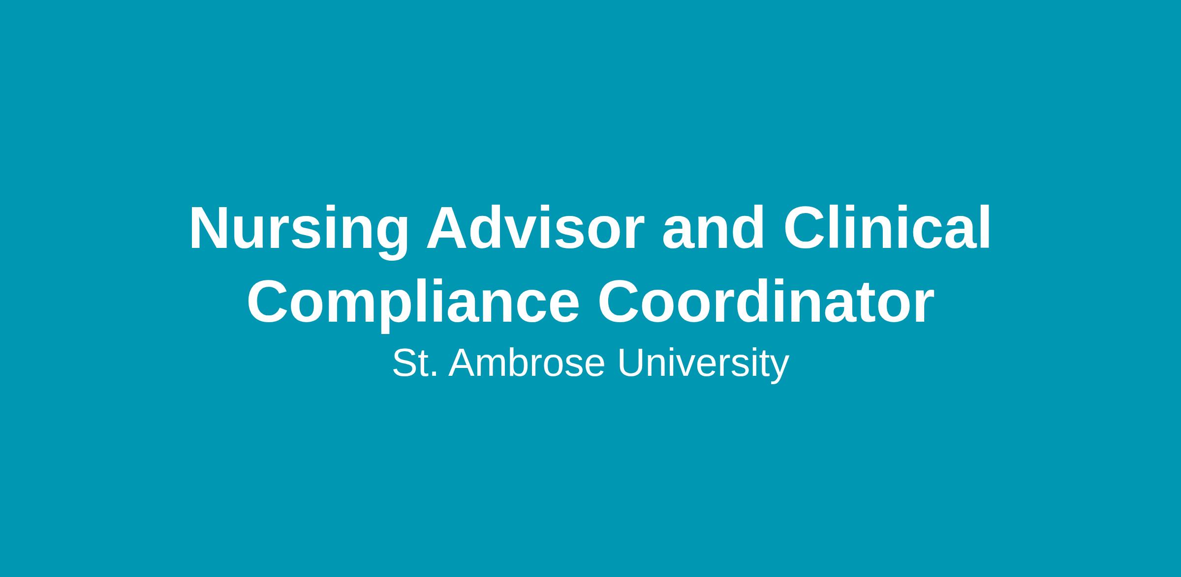 St. Ambrose University and the Mount Mercy University campus located in Cedar Rapids, IA, seeks a dedicated and highly organized Nursing Advisor & Clinical Compliance Coordinator. This position supports nursing students' academic success and ensures all clinical compliance requirements are met to maintain program accreditation and secure clinical placements. This role provides educational guidance and assistance for students by planning schedules, recommending courses and determining appropriate education solutions for all pre-licensure BSN transfer students. The ideal candidate will be organized, student-centered, and knowledgeable about nursing education and healthcare regulatory requirements.
