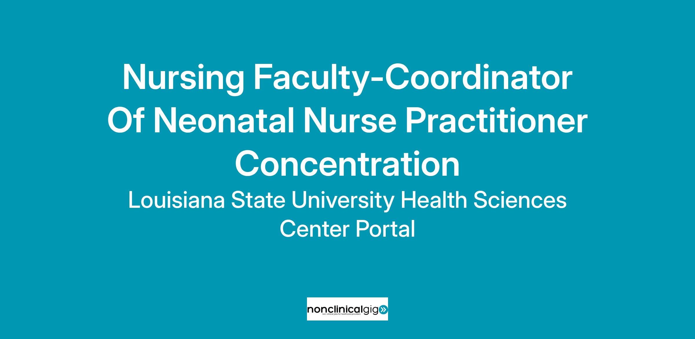 LSU Health New Orleans School of Nursing is seeking a highly motivated individual to join our faculty as a school of nursing excellence within an academic health sciences center environment. Our nursing faculty have the opportunity to educate future nurses at the BSN , MN/ MSN , PhD and DNP level, including state-of-the-art simulation laboratories; conduct nursing & interdisciplinary research; engage in faculty practice, including our nurse-run clinics; pursue entrepreneurial and consultative activities; and serve as a nursing leader and development of leadership skills through our Emergent Nurse Leader Program. We invite you to submit your curriculum vitae for the following faculty position: Coordinator of Neonatal Nurse Practitioner Concentration.