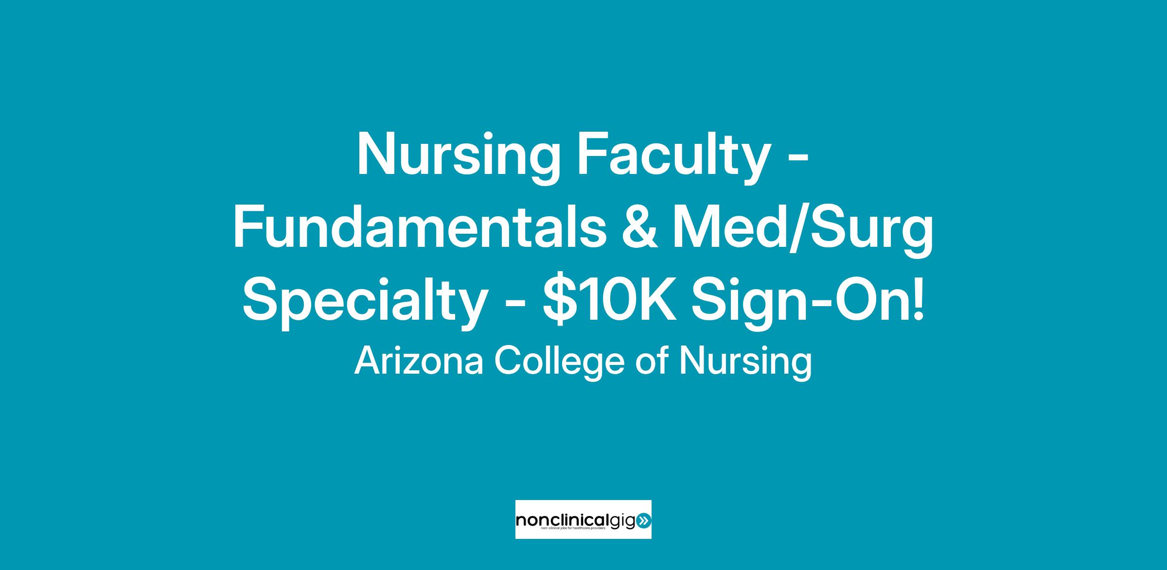 Nursing Faculty - Fundamentals & Med/Surg Specialty - $10K Sign-On!