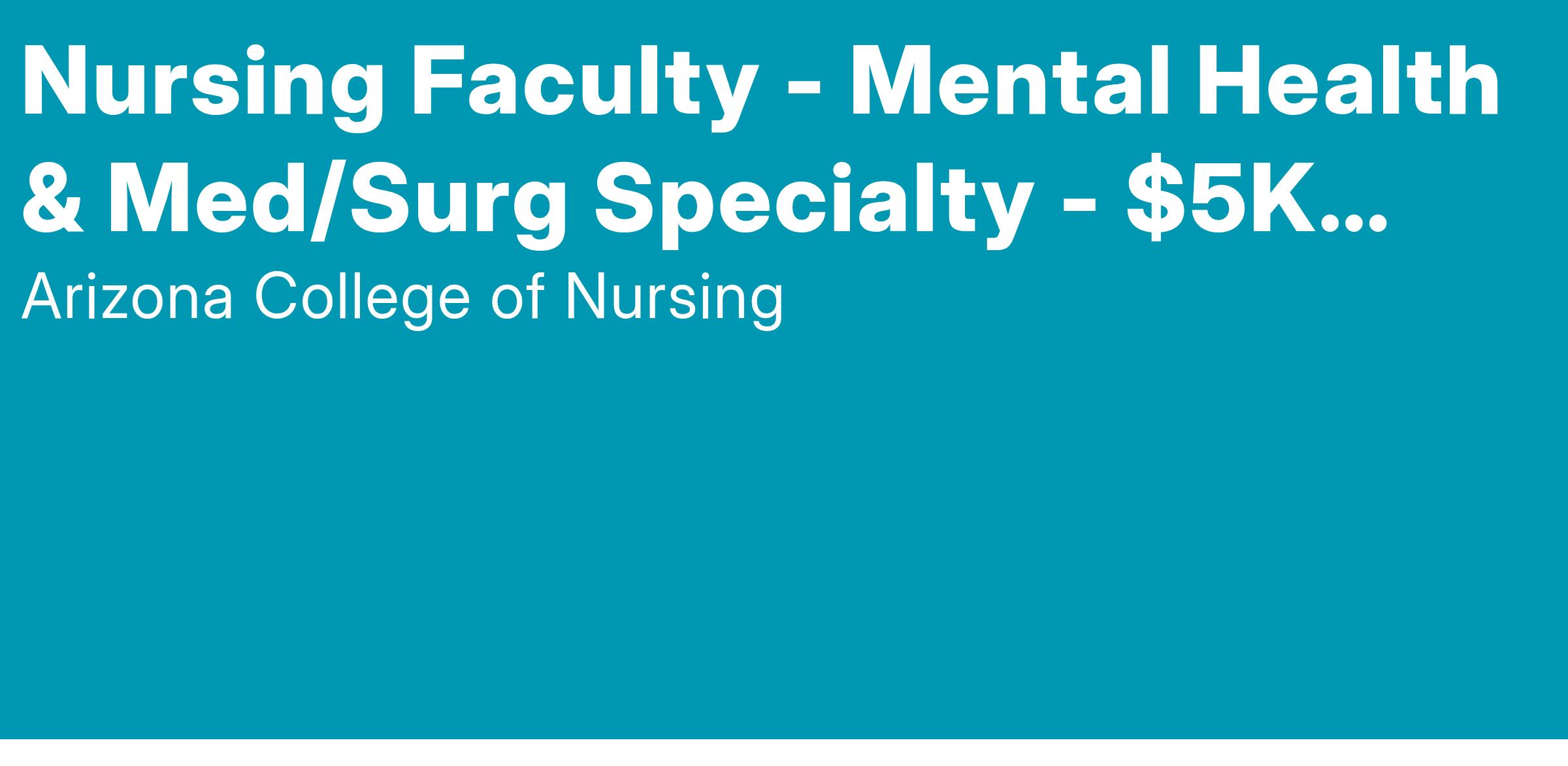 Nursing Faculty - Mental Health & Med/Surg Specialty - $5K Sign-On!