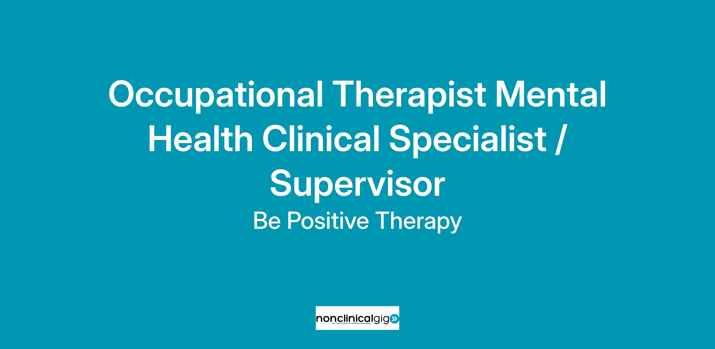 Mental Health Clinical Specialist / Supervisor (Occupational Therapist)