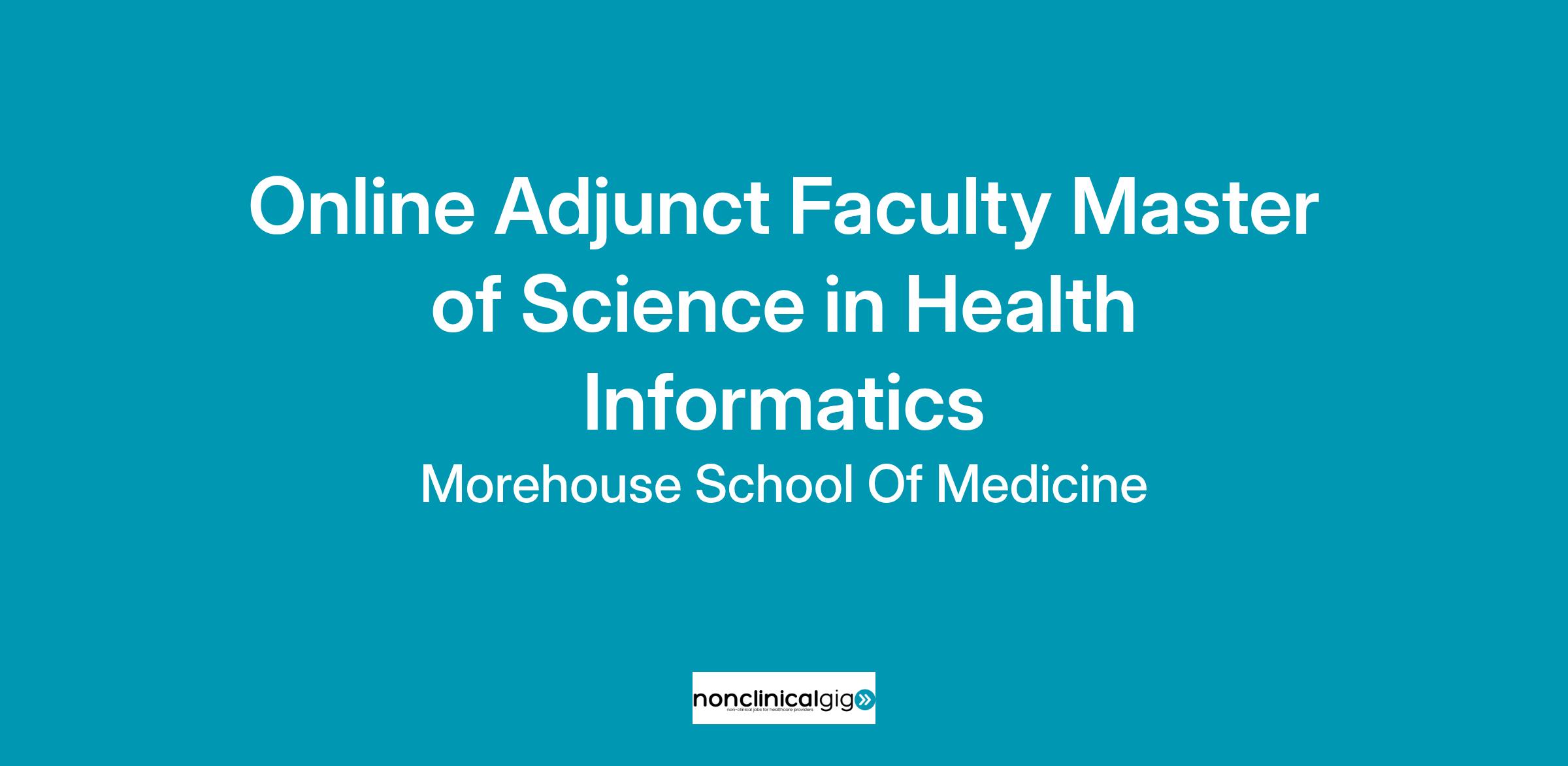 Morehouse School of Medicine is seeking candidates for online Adjunct Faculty for Master of Science in Health Informatics. The mission of MSM is to improve the health and well-being of individuals and communities, increase the diversity of the health professional and scientific workforce, and address primary health care through programs in education, research, and service. Preferred states: GA, KY, TN, WA, CA This role seeks individuals with academic credentials in all areas of Health Informatics. Expectations for Instructional Faculty for Online Courses The following list outlines the expectations for adjunct faculty who are hired as instructors to facilitate an online course for Morehouse School of Medicine. 1. Manage the online course a) Post a welcome message and introduction prior to or within the first 24 hours of the course. Encourage students to post welcome statements to each other. b) Conduct a minimum of one regularly scheduled office hour per week. Office hours are intended to provide students with the ability to communicate with instructors in real-time. If the office hours must be cancelled, students should be given advance notice and provided with information concerning alternate office hours. c) Submit attendance by the following Monday for each week. d) Demonstrate clear understanding of the Online Attendance Policy located in the Online Handbook for Online Courses. e) Contact students and the Program Director and follow up with those who may be experiencing individual issues around attendance or performance and recommending support services as appropriate. 2 . Teach and facilitate the course a) Teach the assigned course in accordance with learning objectives and session plan outlines. b) Deliver learner-centered instruction through online delivery mechanisms (i.e. discussion boards, office hours, small group sessions, asynchronous sessions, etc.) c) Promote discussion board participation by posting substantial responses to select student postings at least three different days per week. d) Respond to all student communications within one business day. If a student concern requires additional time to resolve, please send an acknowledgement to the student to indicate receipt of his/her message. e) Post announcements relevant to address upcoming activities, encourage use of learning support services, clarify expectations, student concerns, etc. 3. Assess student learning a) Adhere to all rubrics to assess student learning. b) Submit grades 5 business days after due date in the online grade book and keep the grade book current. Provide each student substantial feedback on assignments that contribute to the final grade. c) Grade all final assignments and submit final course grades by Wednesday after the end of the term. d) Stay engaged in the course with any students who have been granted course extensions (incompletes). Be sure to adhere to policy guidelines and timelines.
