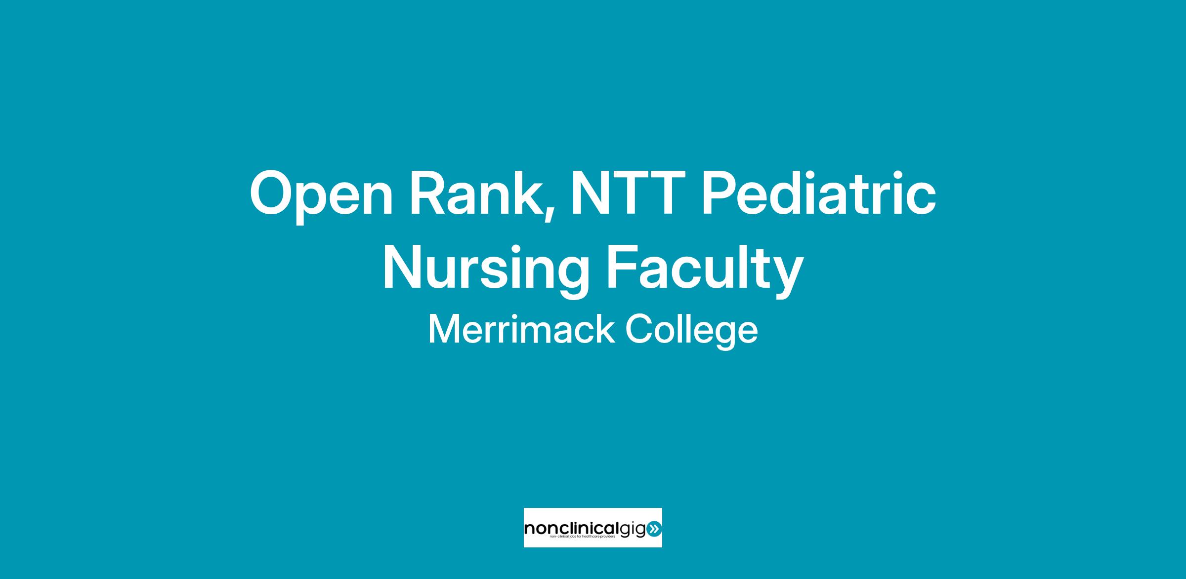The Department of Nursing seeks to hire a dynamic, motivated and highly professional full-time pediatric faculty to serve as an integral member of the dedicated nursing faculty team in our Baccalaureate Degree Nursing Program. Applications for a non-tenure track (Full/Associate/Assistant Clinical Professor) pediatric nursing faculty position are now being requested. This is a 9-month faculty contract position in the Department of Nursing. The ideal candidate should be highly experienced and skilled in undergraduate nursing curriculum, course development, NCLEX preparation and testing, clinical and didactic instruction and student remediation in nursing. Experience in simulation development, implementation, and evaluation would be a plus. Candidates will be expected to teach undergraduate courses in pediatrics and other nursing courses based upon expertise; advise students; contribute to curriculum and policy development, CCNE accreditation, MA BORN regulation self-studies, governance, and evaluation of all nursing program components. Merrimack College seeks candidates with a demonstrated ability to work with students across a broad range of social and personal identities and perspectives.