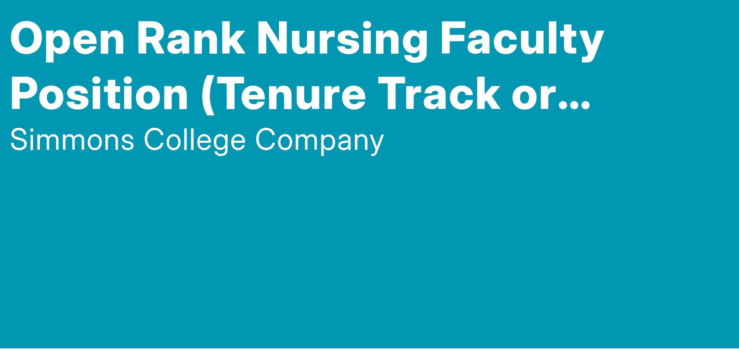 Terms of Service: This is a Boston-based 10-month contract non-tenure OR tenure-track role that reports to the Pre-Licensure Nursing Program Administrator. Consistent with the Faculty Policy Manual (FPM), contract faculty are expected to teach seven courses per year or the equivalent as approved by the Dean, and will receive an annual evaluation. Also consistent with the Faculty Policy Manual (FPM), tenure-track faculty are expected to teach six courses per year or the equivalent as approved by the Dean, and will receive an annual evaluation. However, junior tenure-track faculty receive course release time to focus on scholarship during the first five years, which will be planned in conjunction with the Pre-Licensure Nursing Program Administrator. Faculty are expected to adhere to all applicable Simmons policies.