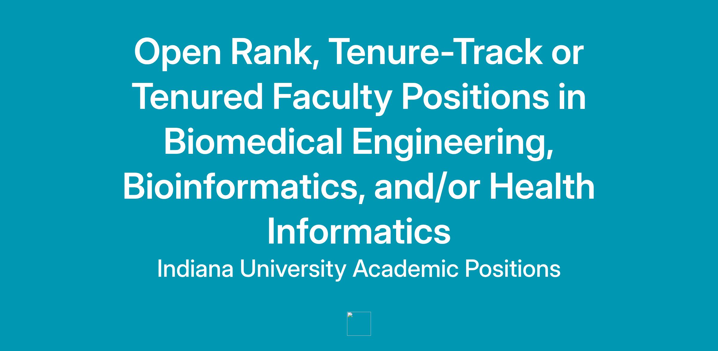 The Luddy School of Informatics, Computing and Engineering at Indiana University Indianapolis invites applications for an open-rank tenure-track or tenured faculty positions in the Department of Biomedical Engineering and Informatics ( BMEI ). The appointment will begin August 1, 2026 at the IU Indianapolis campus. Exceptional faculty candidates are sought to join our fast-growing department. We welcome applications from established researchers with collaborative research teams. Candidates will be considered from all areas in Biomedical Engineering including bio-nanosystems, health and biomedical informatics including health informatics, clinical informatics, medical informatics, and other related areas. Candidates should demonstrate a strong scholarly record of effective, well-reviewed teaching accompanied by a scholarly record of research, exhibited by high-impact peer-reviewed publications and a forward-looking, research agenda. By strengthening or complementing the faculty research in the department, the ideal candidates will use creative, innovative approaches and technologies to address fundamental and translational research challenges with broader societal impact, and have the potential to leverage the strengths of Luddy and affiliate with the Integrated Nanosystems Development Institute ( INDI ) , and other campus-wide institutes , the Convergent Bioscience and Technology Institute ( CBATI ) and the Institute for Human Health and Wellbeing (H2W) , the unique location in downtown Indianapolis, interdisciplinary and collaborative environment and nation-wide leadership in the health and life sciences. IU has also broken ground on a $138 million dollar Launch Accelerator for Biosciences ( IULAB ) – a first-of-its kind academic-industry initiative to harness Indiana’s extensive resources in bioscience discovery, leading to significant advancements in human health. About the Positions Ideal candidates will strengthen and complement existing departmental expertise. Competitive applicants will: Conduct high-impact research in bioinformatics, computational biology, biomedical data science, health informatics, clinical informatics, biomedical engineering, medical informatics, biotechnology, or related fields. Apply innovative computational, analytical, and technological approaches to address foundational and translational challenges in health and life sciences. Demonstrate a strong and productive research program. Contribute to the department’s interdisciplinary, collaborative research culture and leverage unique strengths across the Luddy School and partner units. Candidates from all research areas in bioinformatics, health/biomedical informatics and biomedical engineering are encouraged to apply, including (but not limited to): Bioinformatics, computational genomics, omics analytics Biomedical data science & AI Clinical and health informatics Health information technology ( HIT ), EMR / EHR systems Health information exchange ( HIE ) Natural language processing in clinical/biomedical domains Mobile health, digital health, human–computer interaction in health Learning health systems, community health informatics Biomedical sensors and device engineering Responsibility of the new faculty: 1) to have or to develop an independently funded research program of international caliber: Candidates must demonstrate an outstanding scholarly record of research, exhibited by high-impact peer-reviewed publications and a forward-looking, vigorous research agenda that will secure competitive, external funding. 2) to participate in undergraduate and graduate teaching : The successful candidate will have demonstrated expertise to contribute to the teaching mission of the Bioinformatics program. Experience with active learning strategies, co-teaching, and interprofessional student teams is desirable. 3) to lead multiple initiatives: The successful candidate will promote BMEI research projects, teach subject matters courses, contribute to curriculum development, expand the department’s scope, and serve on a cross-disciplinary team to develop multidisciplinary research projects and training programs in the health and life sciences. About the Department of Biomedical Engineering and Informatics The Department of Biomedical Engineering and Informatics ( BMEI ) is home to a dynamic and interdisciplinary group of 19 faculty members across its Health Informatics, Bioinformatics, Biomedical Informatics ( BMI ), Health Information Management ( HIM ), and Biomedical Engineering programs. The department offers a B.S. in HIM , a B.S. in BMI , developing B.S. in BME , an M.S. in Health Informatics, an M.S. in Bioinformatics, an MS in Biomedical Engineering, a Ph.D. in Informatics – Health & Biomedical Informatics Track (changing it to a PhD in Biomedical Engineering & Informatics while also adding BME track). The faculty in the department conduct groundbreaking, externally-funded (e.g., NIH , NSF , VA, DoD, and other corporate & foundations) research in the areas of Biomedical Engineering including bio-nanosystems, clinical and health informatics, systems interventions, community participatory research, human-computer interaction, usability, mobile technology, and bioinformatics. Indiana is home to large healthcare exchanges, including Indiana Health Information Exchange ( IHIE ) and Michiana Health Info Network [ MHIN ], as well as multiple healthcare systems within Indiana. BMEI enjoys close collaborations with other departments in the school and with the Regenstrief Institute, a pioneering institution in healthcare information technologies. Other partnerships include the IU Center for Computational Biology and Bioinformatics ( CCBB ), the IU Center for Bioethics, the VA Center for Health Information and Communication ( CHIC ), Indiana University Health (one of the largest health care organizations in the Midwest), the Schools of Nursing, Dentistry and Fairbanks School of Public Health as well as IU School