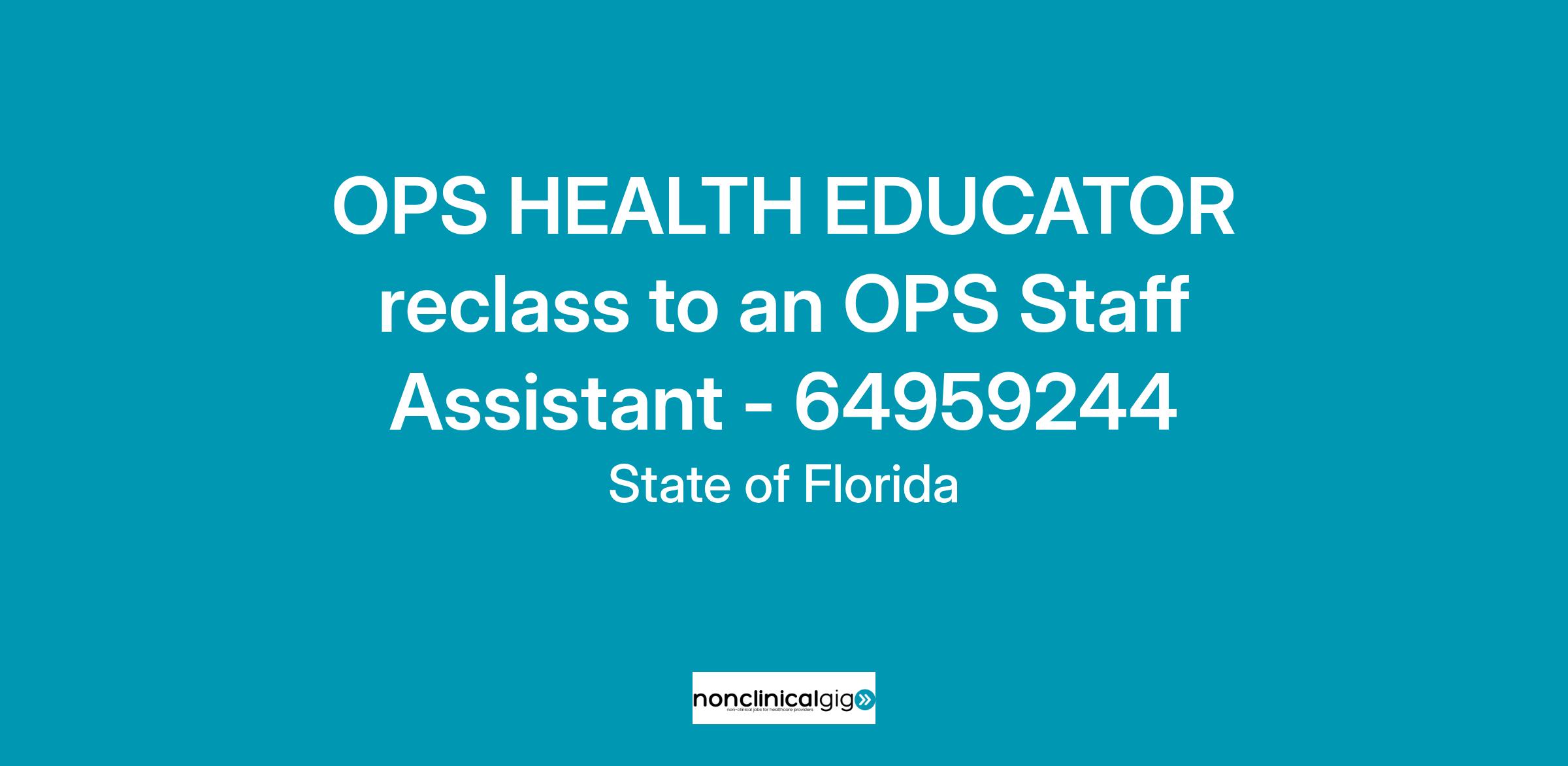 Working Title: OPS HEALTH EDUCATOR reclass to an OPS Staff Assistant - 64959244