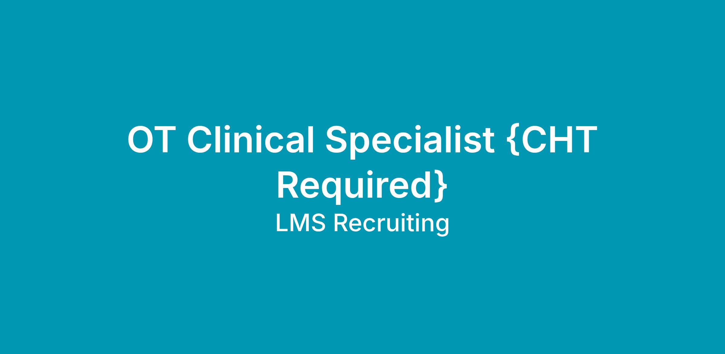 We are currently looking for an Occupational Therapist Clinical Specialist {CHT required} for a Texas Health Outpatient Center located in McKinney, Tx.