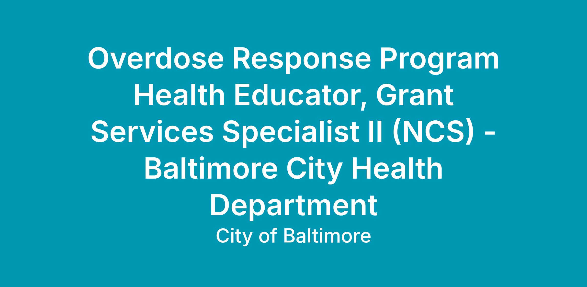 The Baltimore City Health Department is currently seeking a dynamic individual to serve as an Overdose Response Program Health Educator (ORP). The Overdose Response Health Educator position is responsible for the identification, coordination and implementation of overdose prevention and response strategies and initiatives that help address substance-use disorder and the overdose crisis. The role will focus on conducting Naloxone/Narcan training and general overdose education and community-based outreach. The health educator will be involved in planning, coordination, and implementation of overdose prevention and response strategies.
