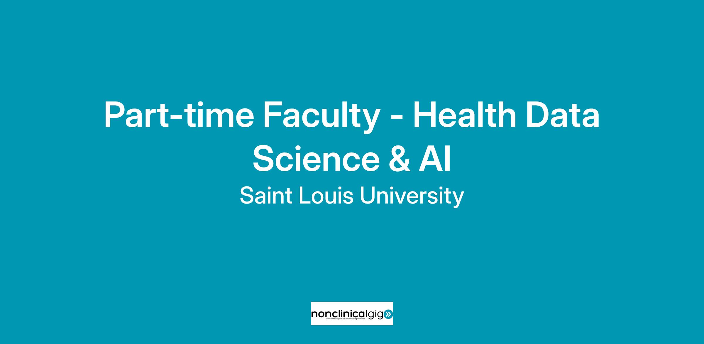 The Department of Health and Clinical Outcomes Research at Saint Louis University School of Medicine invites applications for Adjunct Assistant or Associate Professor positions to teach graduate-level courses and mentor students in applied health data science and artificial intelligence in medicine.