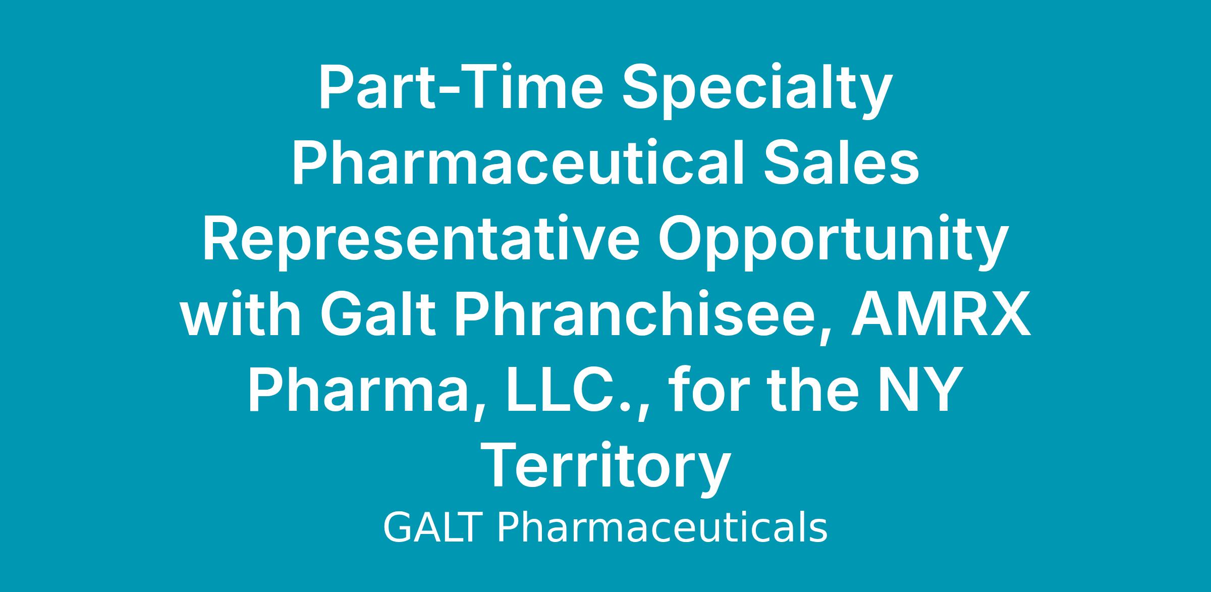 Candidates acknowledge that this is an opportunity to be employed or contracted with Galt Phranchisee, AMRX Pharma, LLC., who is licensed to promote and market Galt Pharmaceutical's products in the Syosett Long Island, NY Territory. Candidates also consent to forwarding their resume and contact information to the phranchisee to be considered for this position.