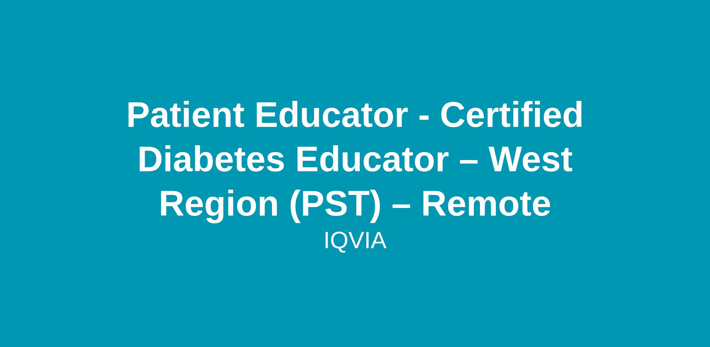Patient Educator - Certified Diabetes Educator – West Region (PST) – Remote