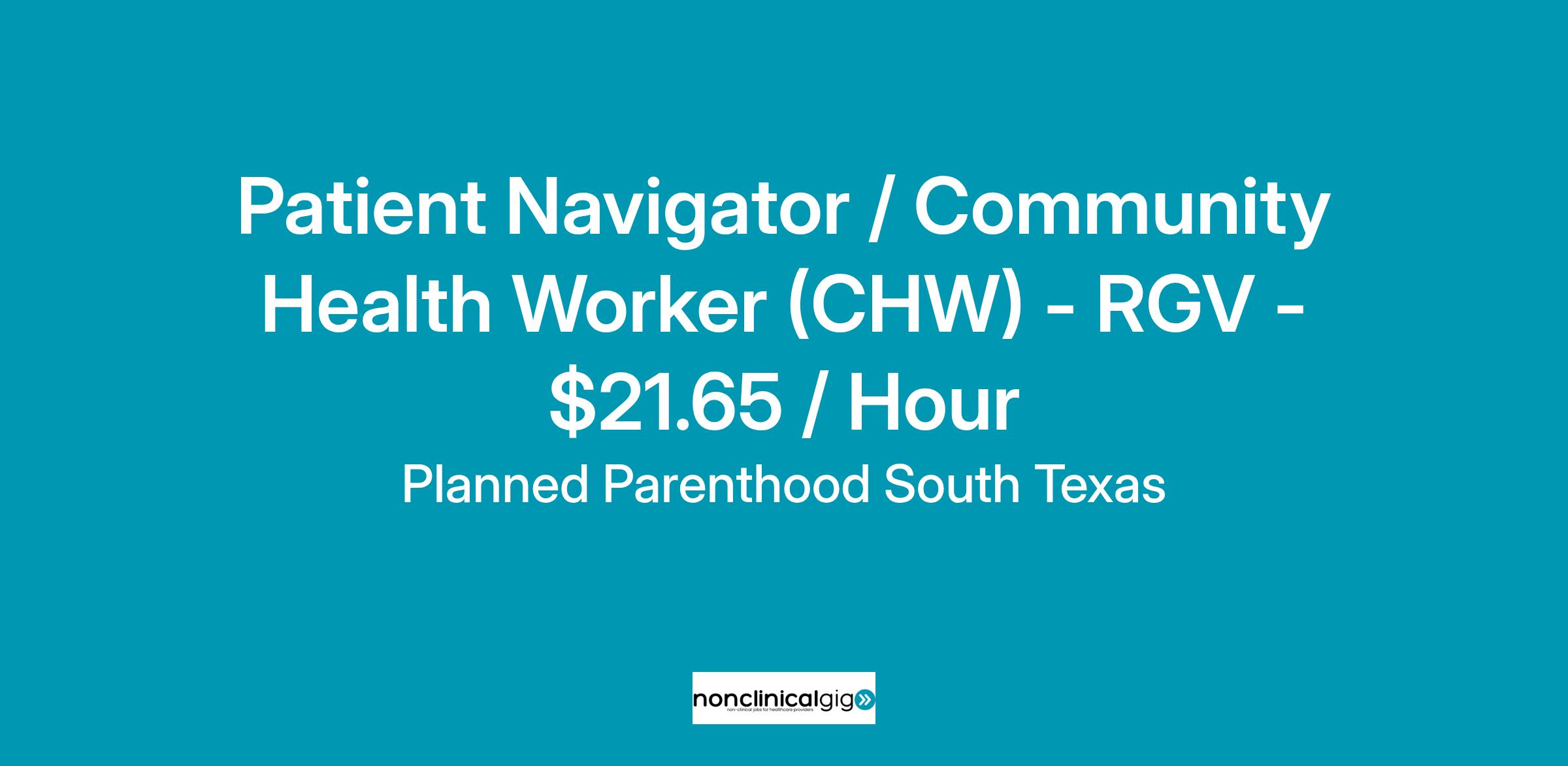 The Patient Navigator / Community Health Worker is a full-time position located in the Rio Grande Valley - serving the Harlingen & Brownsville, TX area. Flexibility in hours is essential to this role to ensure the needs of the community we serve are being met. Saturday & evening work will be required on a regular basis for health fairs, community events & meetings.