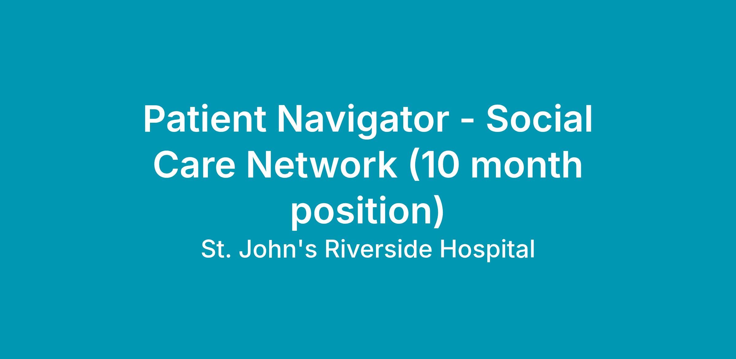 The Social Care Network (SCN) Patient Navigator is responsible for supporting community members experiencing a range of Social Determinants of Health (SDOH) challenges by connecting them to resources that improve their overall health and well-being. This position plays a key role in St. John’s Riverside Hospital’s (SJRH) participation in New York State’s Medicaid 1115 Waiver by conducting SCN eligibility screenings, completing assessments, and providing social care navigation services for Medicaid recipients in Westchester County.