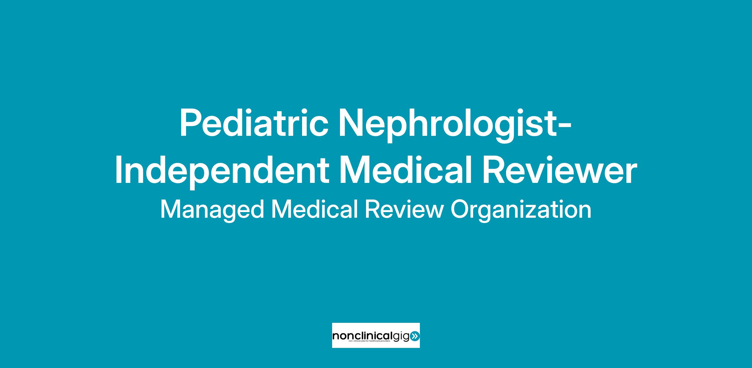 Position Title: Physician Reviewer – Pediatric Nephrologist Organization: Managed Medical Review Organization (MMRO) Employment Type: Independent Contractor Industry: HealthcareAbout MMRO Managed Medical Review Organization (MMRO) is an established, URAC-accredited Independent Review Organization (IRO) that provides objective, evidence-based medical peer reviews nationwide. We are currently seeking Board-Certified Pediatric Nephrology Physicians to join our network of sub-contracted Physician Reviewers.Responsibilities