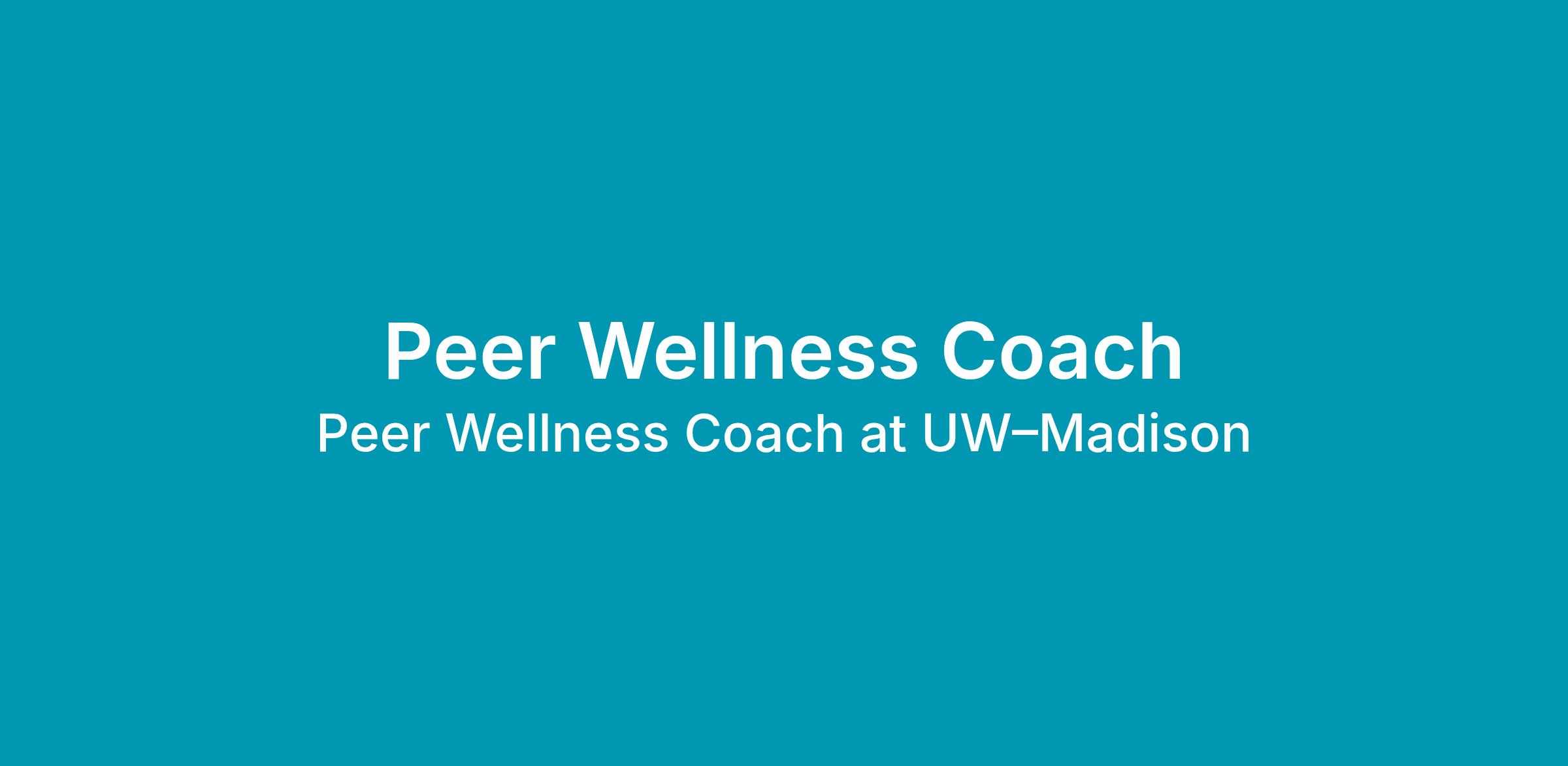 Peer Wellness Coaches work independently and collaboratively with Professional Wellbeing Staff and the Peer Wellness Coach team to provide wellness coaching on campus with Recreation & Wellbeing at UW-Madison. |