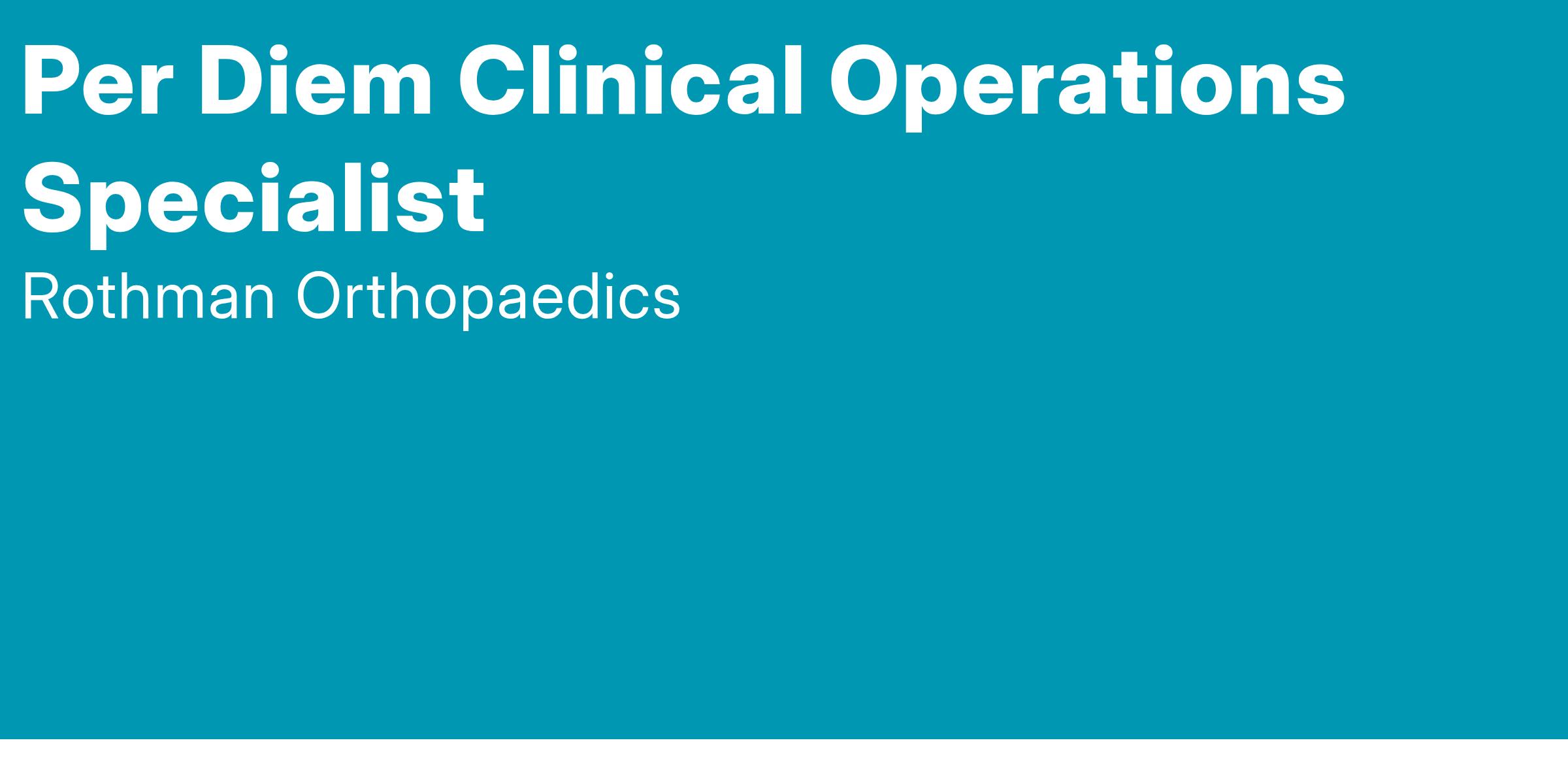 Rothman Orthopaedics is looking to hire a per diem Medical Assistant to work as a Clinical Operations Specialist based in our Malvern, PA office!