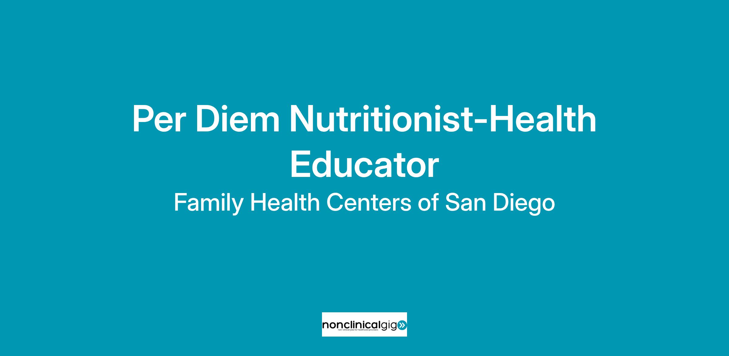 *As a Nutritionist-Health Educator for Family Health Centers of San Diego, you provide individual nutrition assessment, education, and care plans for our patients. You participate in and support individual, family, and group nutrition/chronic disease education services by creating culturally and linguistically appropriate curriculums, planning programs, delivering education, and evaluating effectiveness. You have a passion for community health promotion, for serving the medically underserved, and you understand-and can easily communicate-how nutrition drives patient health and outcomes.
