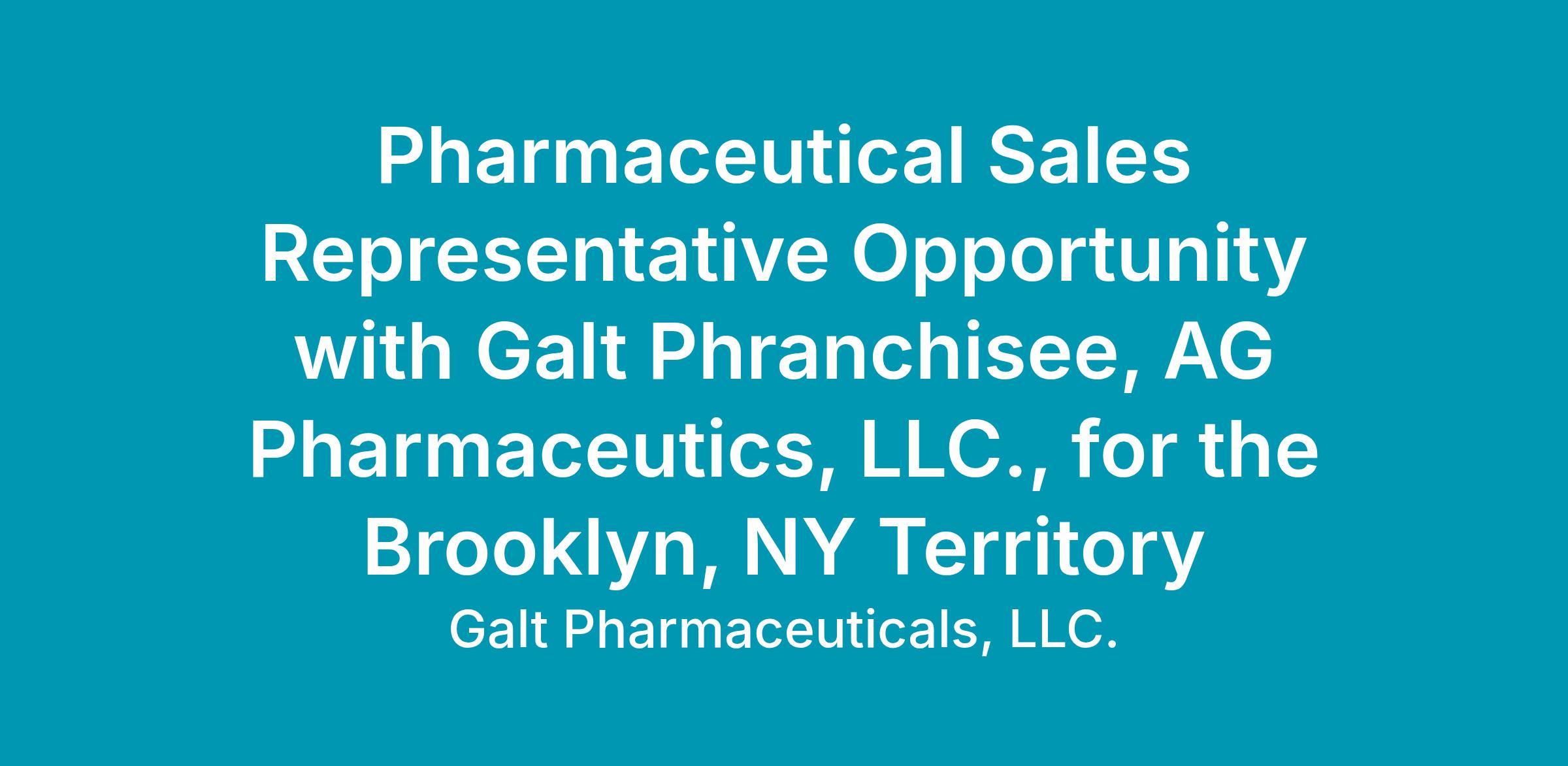 Pharmaceutical Sales Representative Opportunity with Galt Phranchisee, AG Pharmaceutics, LLC for the Brookyln, NY Territory
