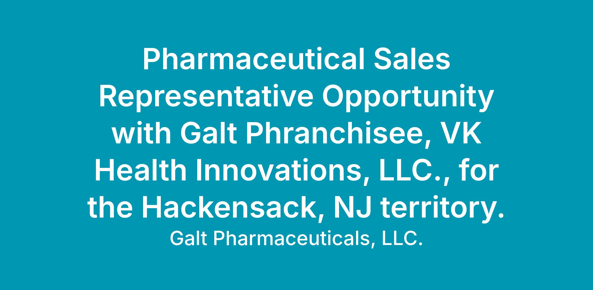 Pharmaceutical Sales Representative Opportunity with Galt Phranchisee, VK Health Innovations, LLC., for the Hackensack, NJ territory.