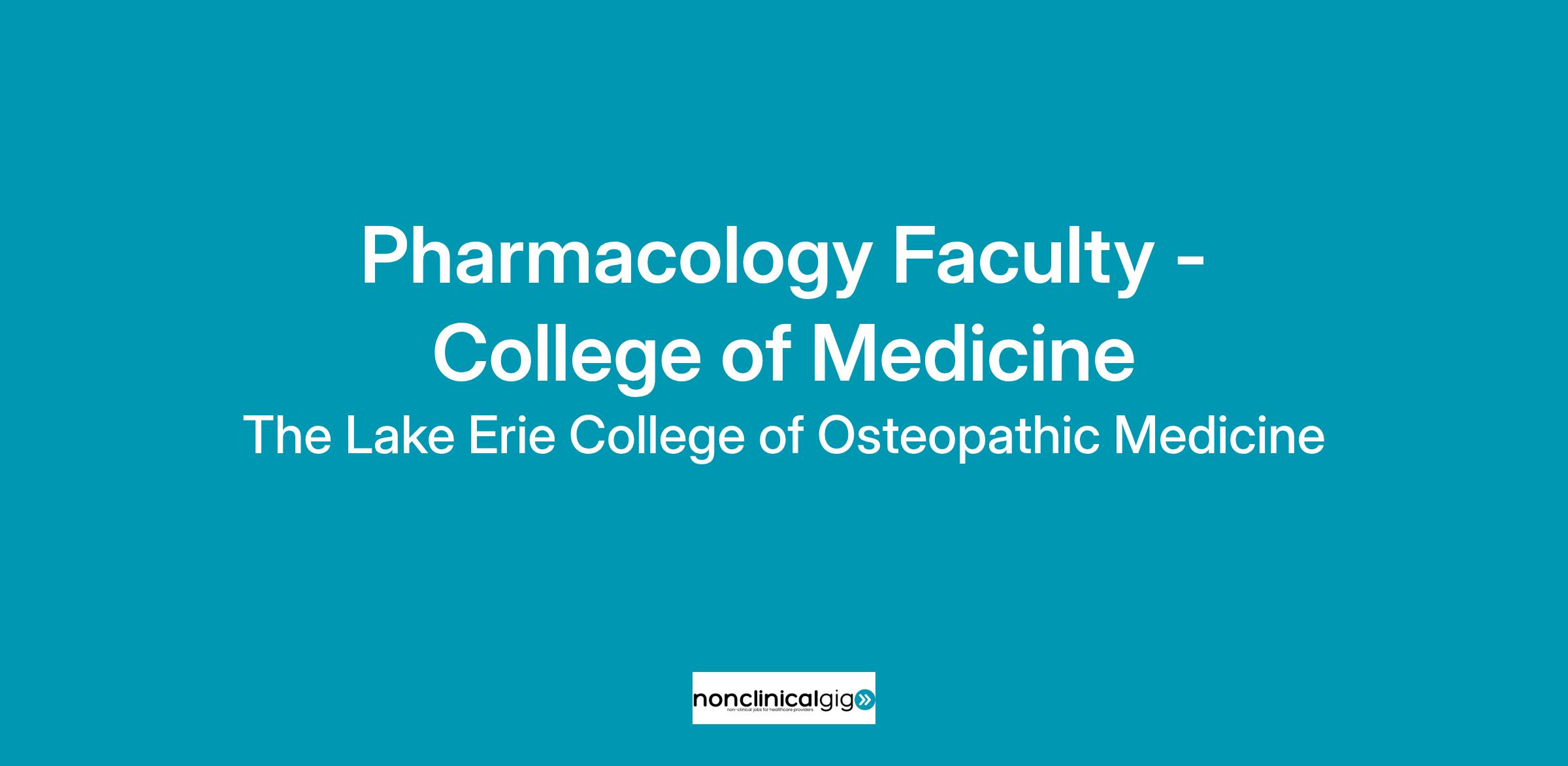 JOB SUMMARY: A full-time basic science faculty member is required to serve as an educator specializing in pharmacology, facilitating Problem Based Learning (PBL), advising Osteopathic Medical students, interviewing applicants, and contributing to the mission of the college through research and service. The successful candidate is knowledgeable and qualified to teach Pharmacology at a Medical College level.