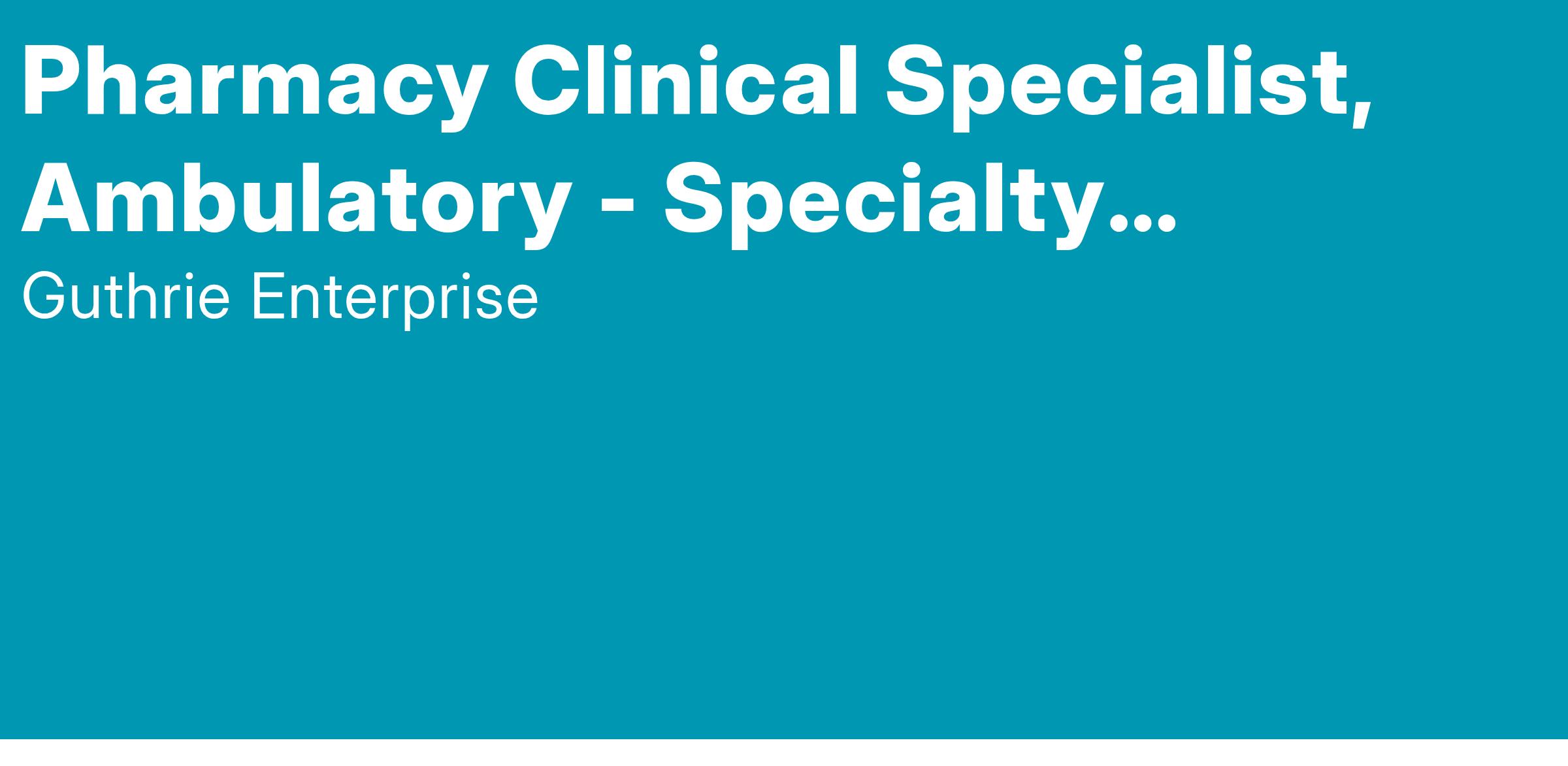 Position Summary: Ensures that the Pharmacy Department provides optimal clinical services on a daily basis. Facilitates the development, implementation, and maintenance of systems that promote desirable patient outcomes through the use of safe, cost‐effective drug therapies Education, License & Cert: Graduation from an ACPE accredited School of Pharmacy with a PharmD degree. A PGY2 residency (or equivalent experience) is required. Currently licensed to practice Pharmacy in the Commonwealth of Pennsylvania. A license to practice in the State of New York is also desired.