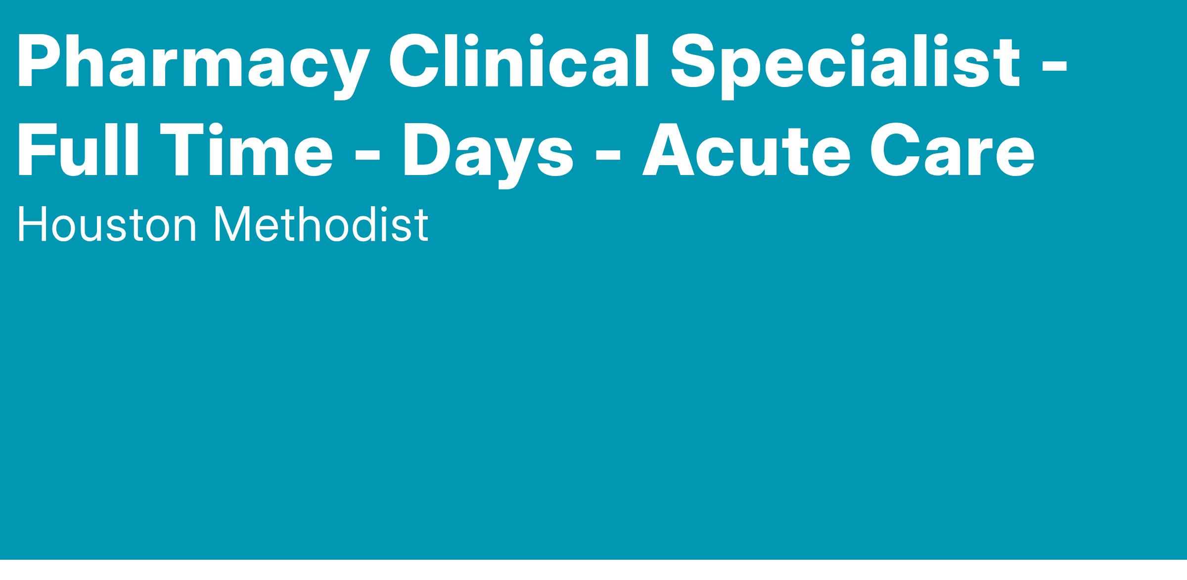 At Houston Methodist, the Pharmacy Clinical Specialist position is responsible for performing advanced clinical pharmacy duties enabling the delivery of optimal pharmacotherapy to patients and facilitating safe, efficacious, and pharmacoeconomically rational use of medications in the population(s) served. This position involves daily reactive and targeted proactive medication regimen reviews for patients within the designated area(s) of responsibility or populations served. The Pharmacy Clinical Specialist position supports the delivery of pharmacy managed protocols, formulary processes and medication reconciliation activities while providing education to fellow pharmacists, nurses, and medical staff. Additional duties for this position include precepting pharmacy students and pharmacy residents on clinical patient care rotations within areas of responsibility and contributing to fulfilling the organization's mission to provide innovative, personalized, cost-effective pharmaceutical care in a culture dedicated to quality and safety.