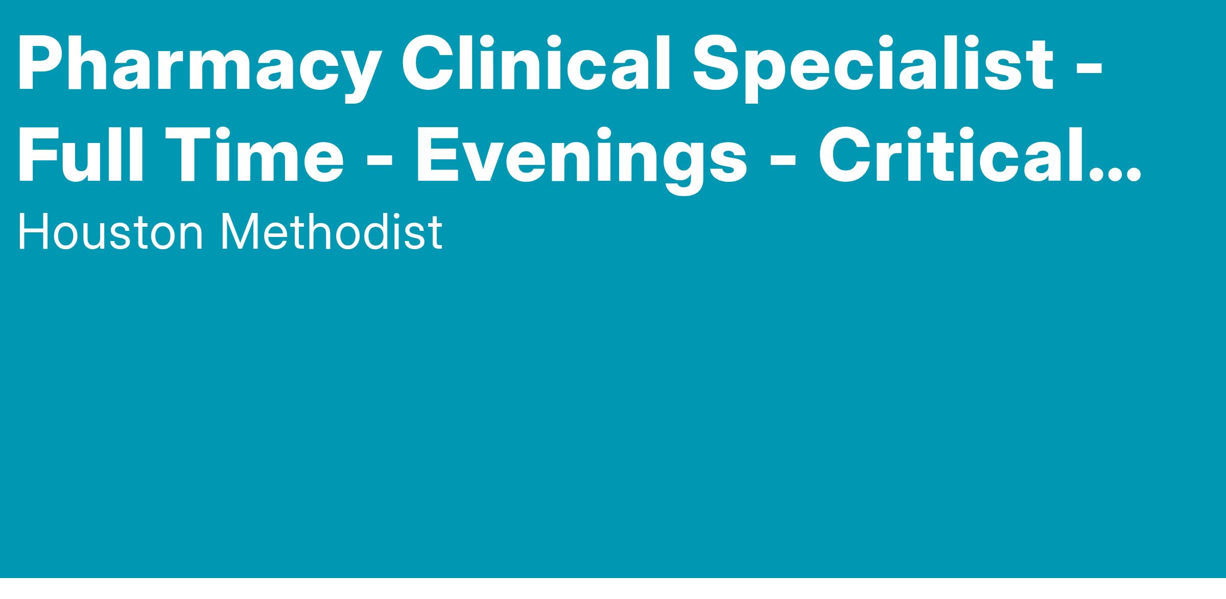 Pharmacy Clinical Specialist - Full Time - Evenings - Critical Care