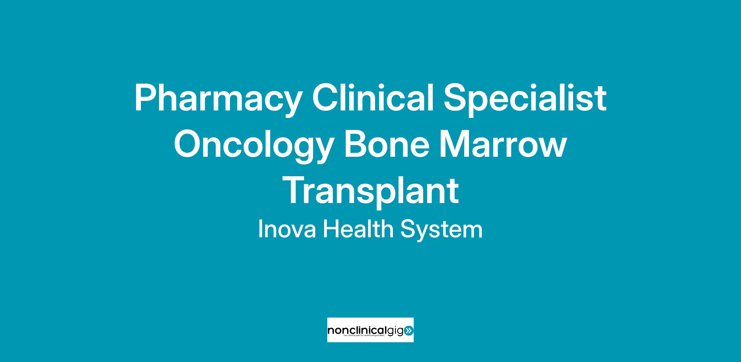 DescriptionInova Fairfax Hospital has a unique and exciting opportunity for a dedicated Pharmacy Clinical Specialist- Oncology Bone Marrow Transplant (BMT) to join the team and assist in building the BMT Program. Come join a pharmacy team that is part of the Trauma 1 hospital where there is constant innovation and growth.