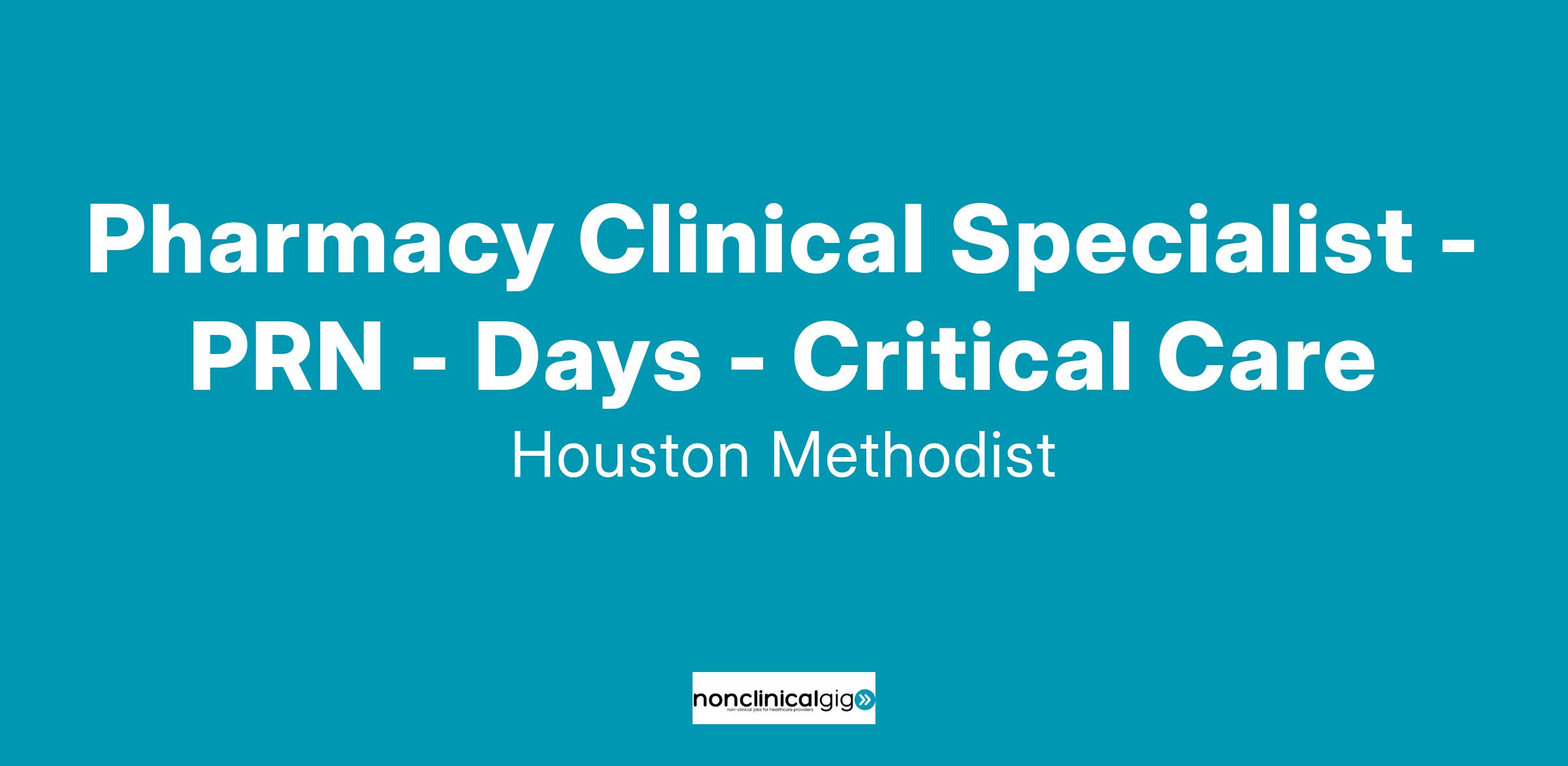 Pharmacy Clinical Specialist - PRN - Days - Critical Care