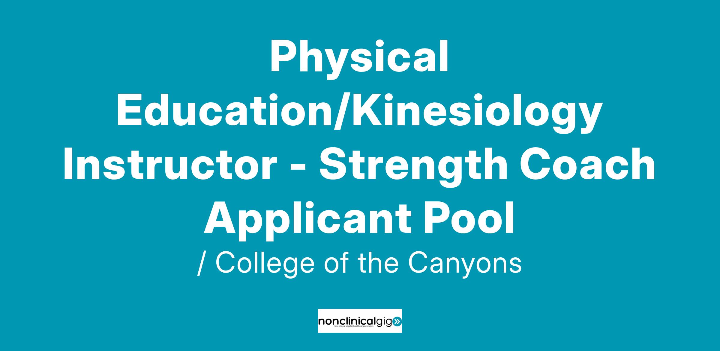 College of the Canyons is seeking adjunct faculty members in Physical Education/Kinesiology - Strength Coaching. Applications will be considered for immediate and future eligibility into the Physical Education/Kinesiology - Strength Coaching Applicant Pool.