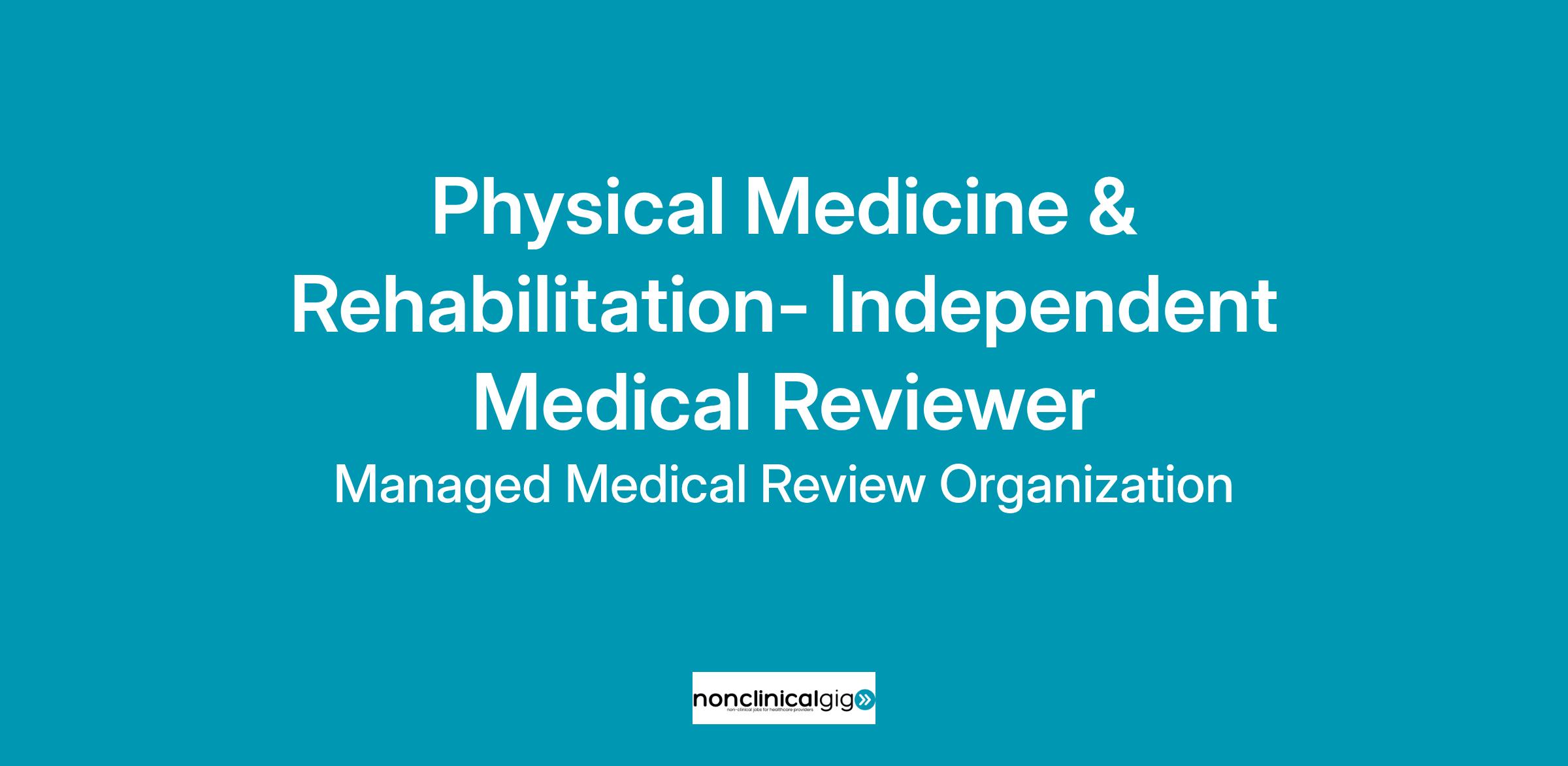 Position: Physician Reviewer – Physical Medicine & Rehabilitation Organization: Managed Medical Review Organization (MMRO) Employment Type: Independent Contractor (Remote) Managed Medical Review Organization (MMRO) is seeking Board-Certified Physical Medicine & Rehabilitation Physicians to perform independent medical chart reviews. This is a subcontracted, remote opportunity offering flexibility and professional collaboration with an experienced clinical review team. Responsibilities: