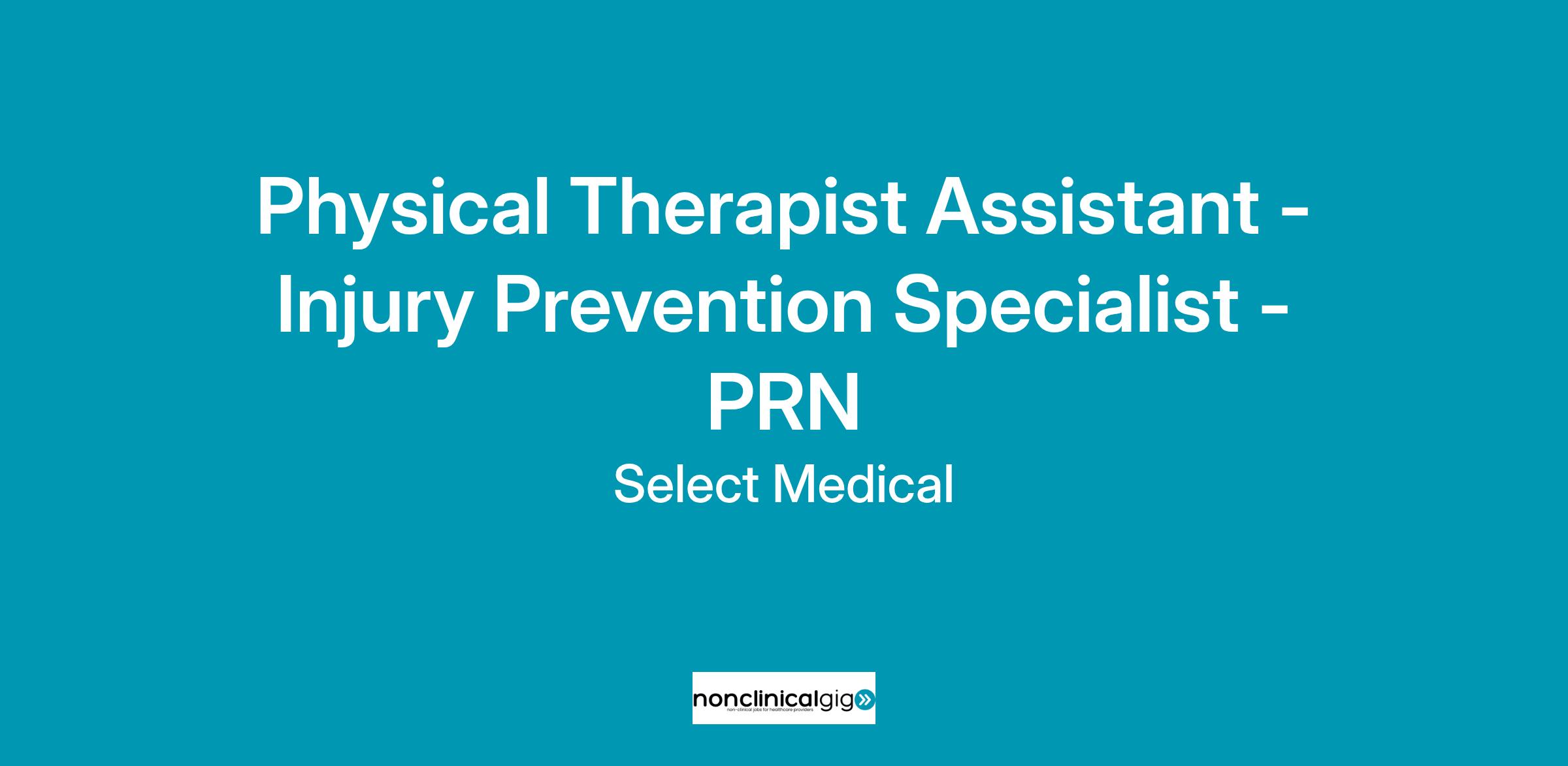 Select Physical Therapy is currently seeking a full-time Injury Prevention Specialist/PTA for an industrial setting.