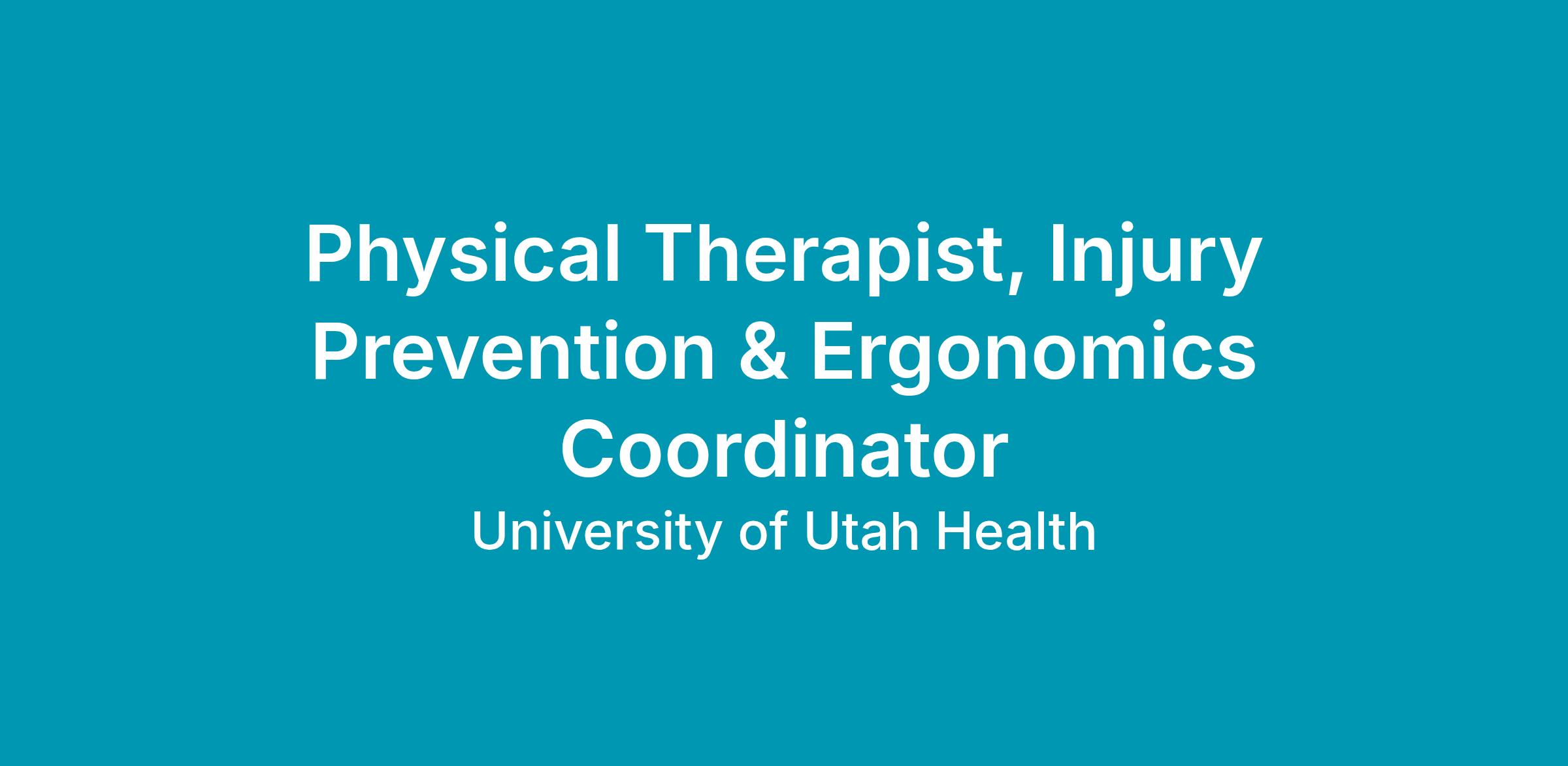 The Physical Therapist, Injury Prevention & Ergonomics Coordinator is responsible for the system-wide development, implementation, coordination, training, and continuous improvement of employee injury prevention programs across University of Utah Health.This role focuses on safety-sensitive environments and is accountable for advancing safe patient handling, material handling, ergonomic practices, and related injury reduction initiatives. The position partners across hospitals, clinics, and ambulatory sites to standardize best practices, influence cultural change, and reduce employee injury rates through data-driven interventions and operational collaboration.The role serves as the subject matter expert for ergonomic and injury prevention practices and leads cross-functional initiatives aligned with the organizationβs mission, vision, values, and strategic priorities.