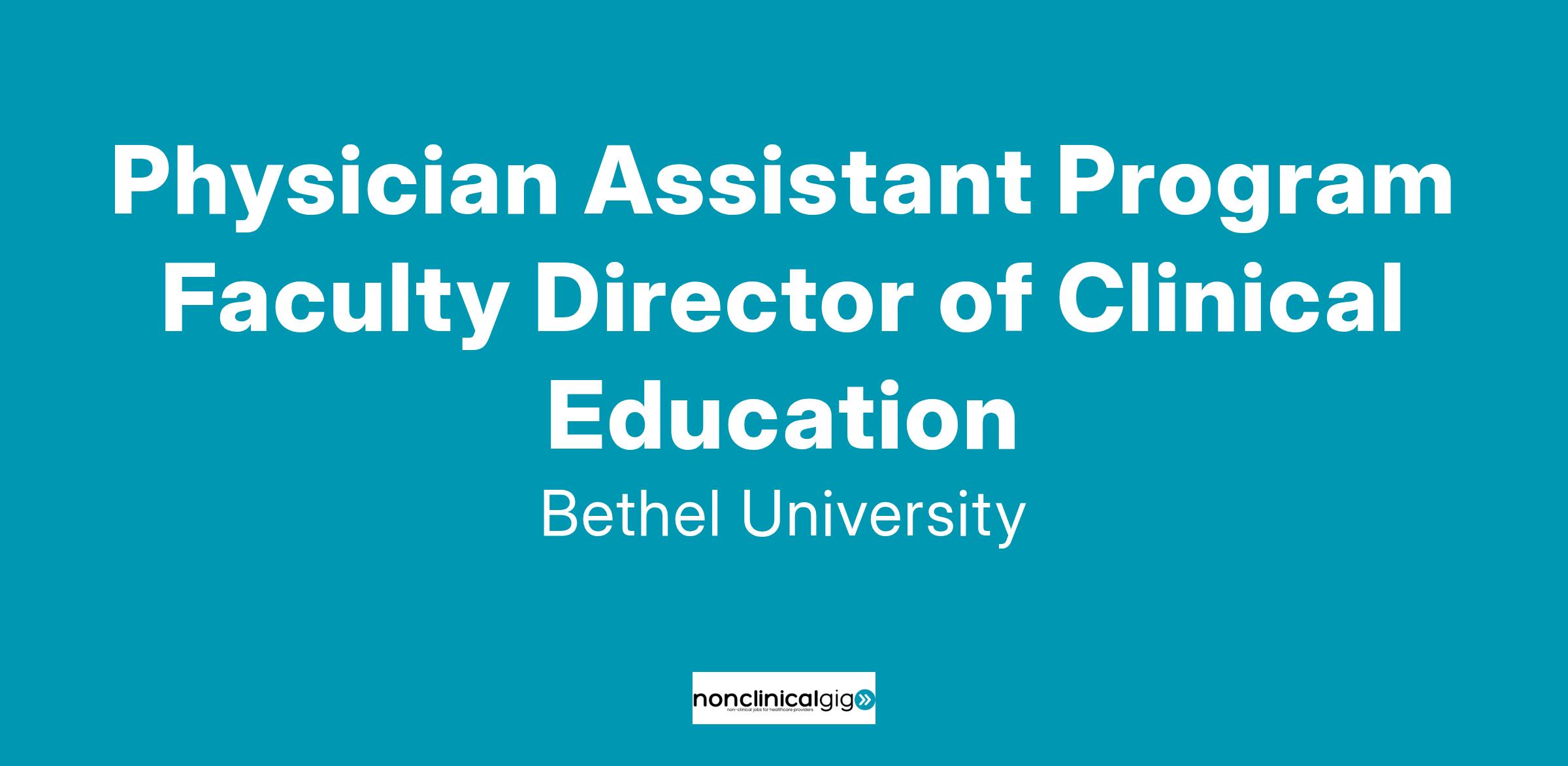 This faculty position is a full-time, in-person tenure track or clinical track role within the Bethel University Physician Assistant program. The Director of Clinical Education oversees the clinical education component of PA education and works closely with the Clinical Coordinator and clinical team. Areas of focus include student clinical rotation placement, recruitment/retention of clinical sites, clinical site visits and evaluations, and ensuring compliance with accreditation standards. Includes supporting and teaching students throughout their didactic and clinical education. This individual will work closely with the Program Director and collaborate closely with faculty, staff, preceptors, and affiliated healthcare institutions.