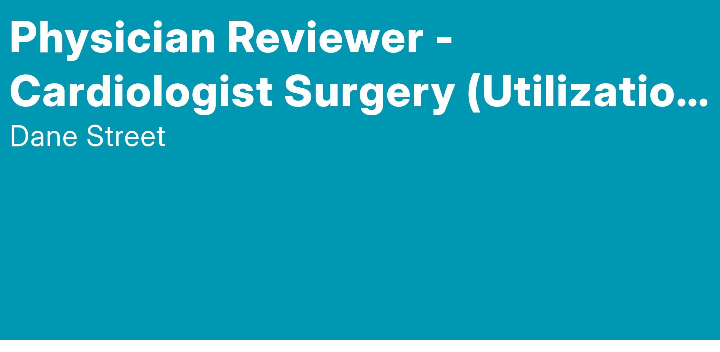 Dane Street, a leading Independent Review Organization (IRO) and national provider of Utilization Review (UR) services, is currently expanding our physician panel. We are seeking Board-Certified Cardiologists with an active Colorado medical license to perform independent medical reviews on a flexible, remote (telework) basis.